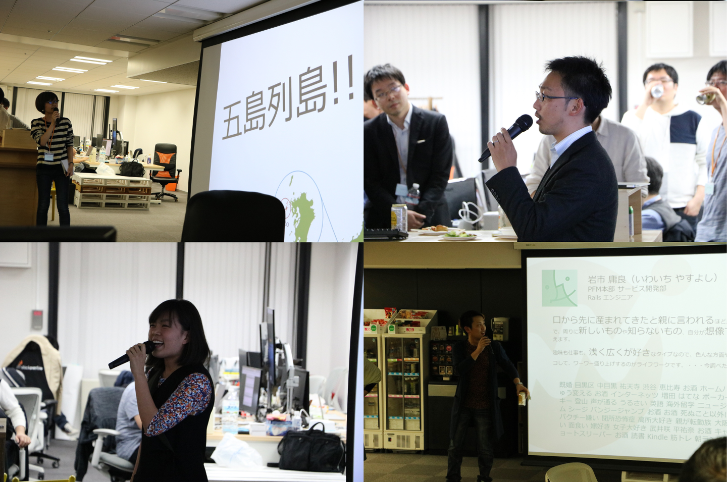 内容も経歴の話やマネーフォワードでの意気込み、出身地や趣味のことなど人それぞれ。中には自作のゲームを披露するエンジニアさんもいたり、こちらも個性の存分に出た内容となっていました。