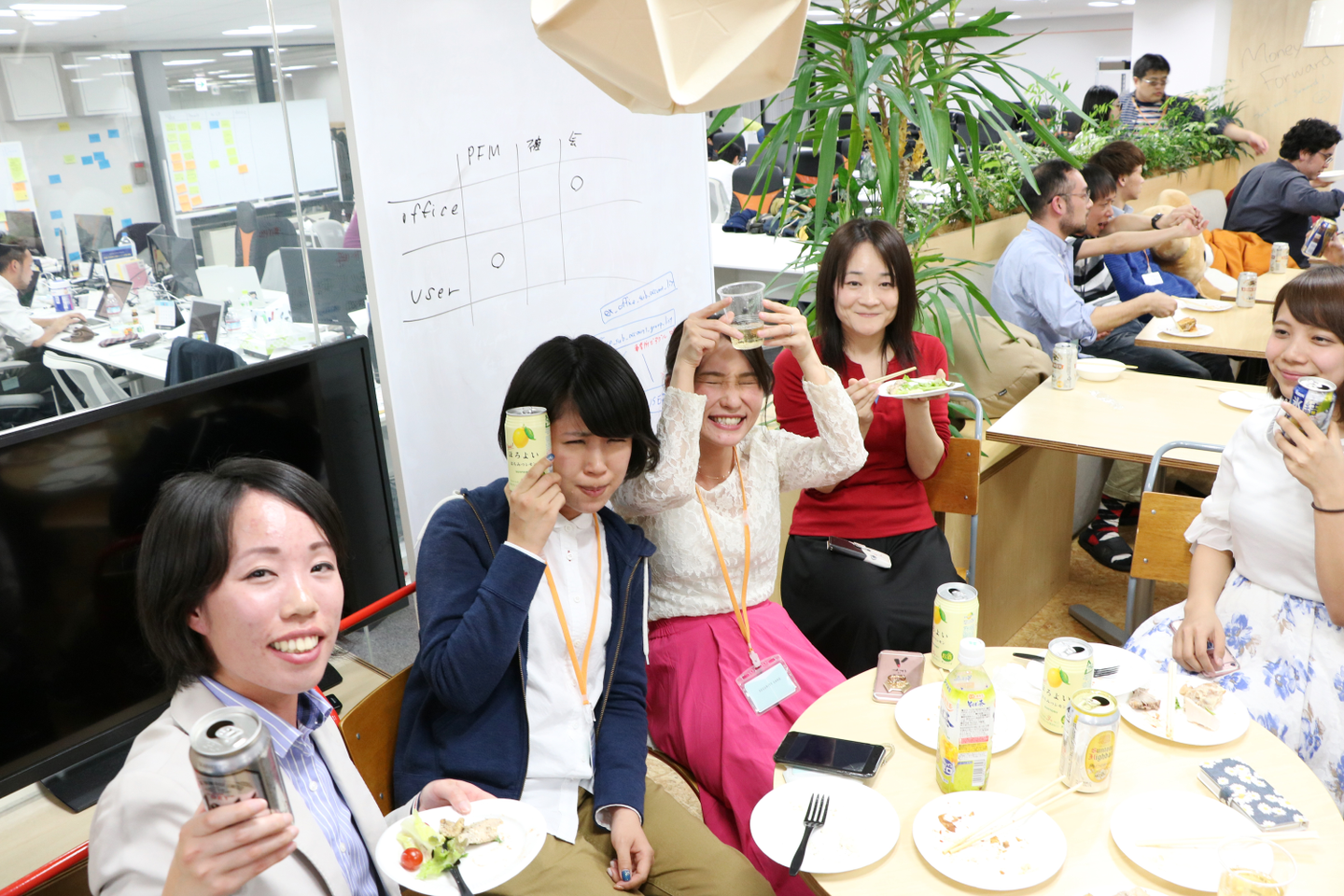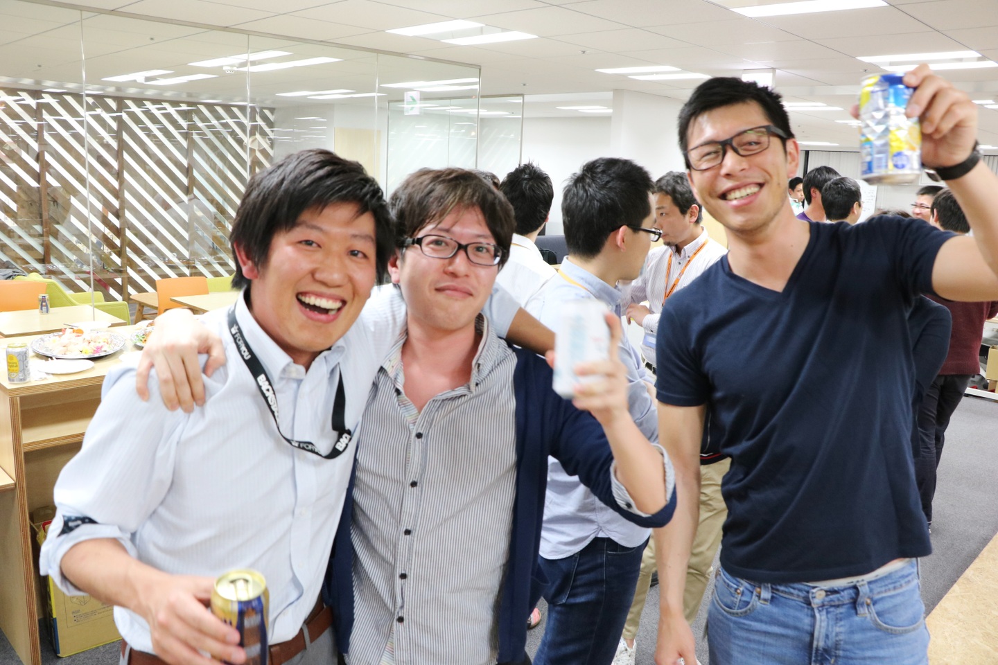 マネーフォワードでは2ヶ月に1回、美味しいお酒と料理を用意して全社懇親会を実施しています。時期によっては「ハロウィン」とか「夏祭り」とかテーマが設定されることもあるそうで、今から次の懇親会が楽しみです。