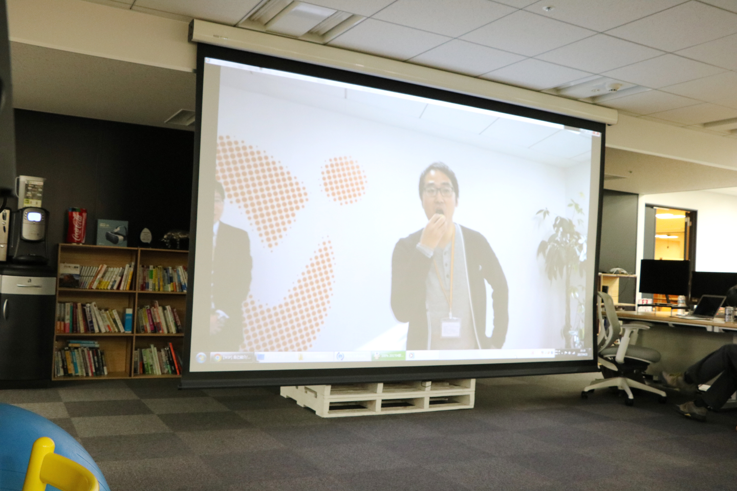 乾杯後には、「部署紹介ムービー」が上映されました。