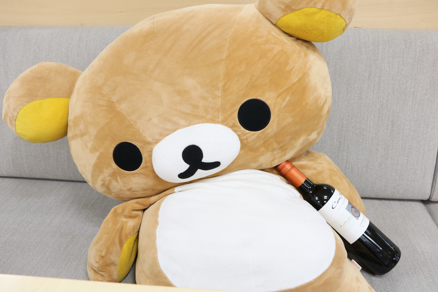 リラックマはワインのボトルを抱え込んでいました。