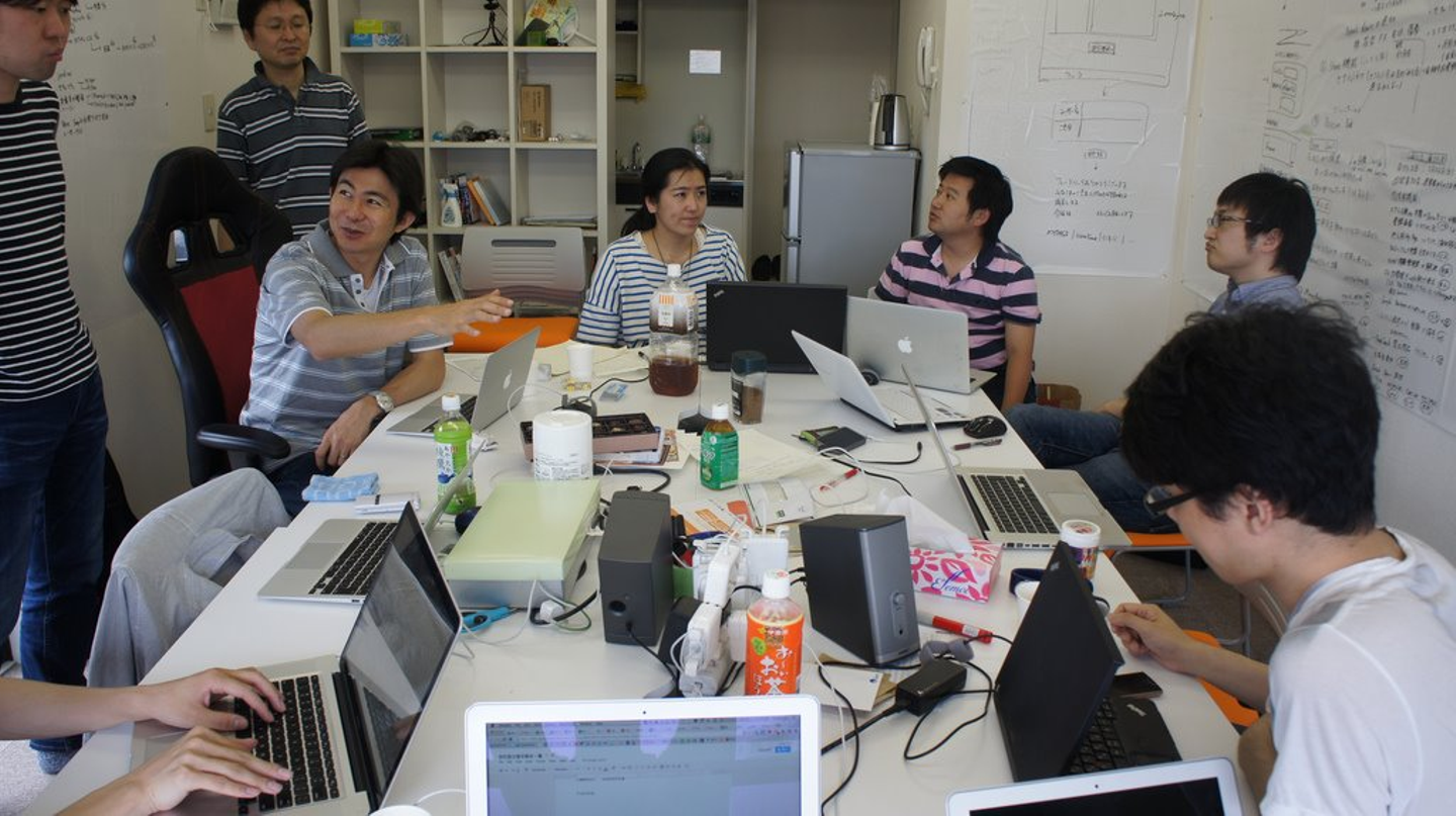 こちらは、5年前の創業直後の写真です。辻が話すように今ではたくさんのメンバーが支える会社となりました。