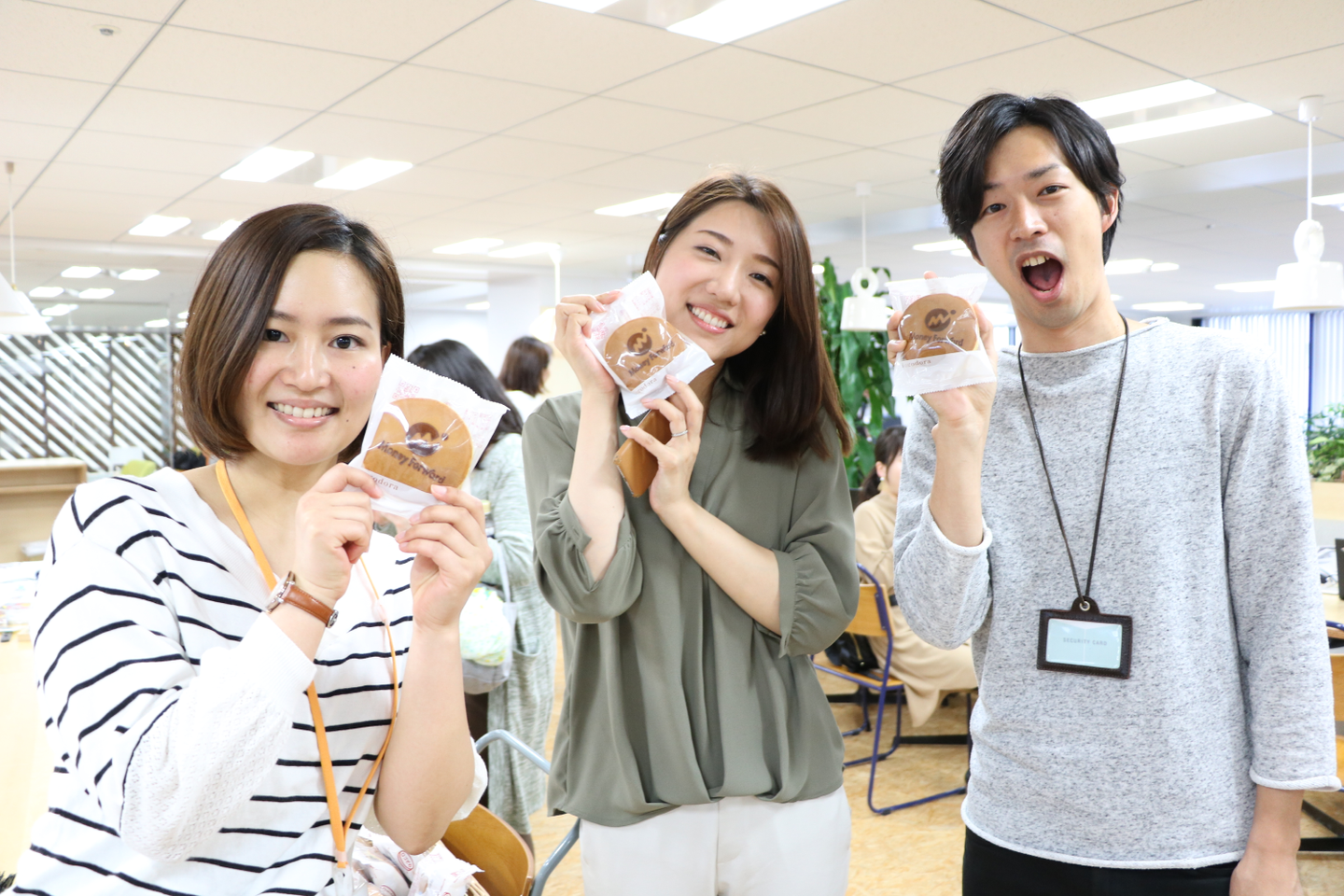 今回は、従業員の皆へのお土産として、マネフォどら焼きを用意しました。ロゴの焼き印が可愛い。