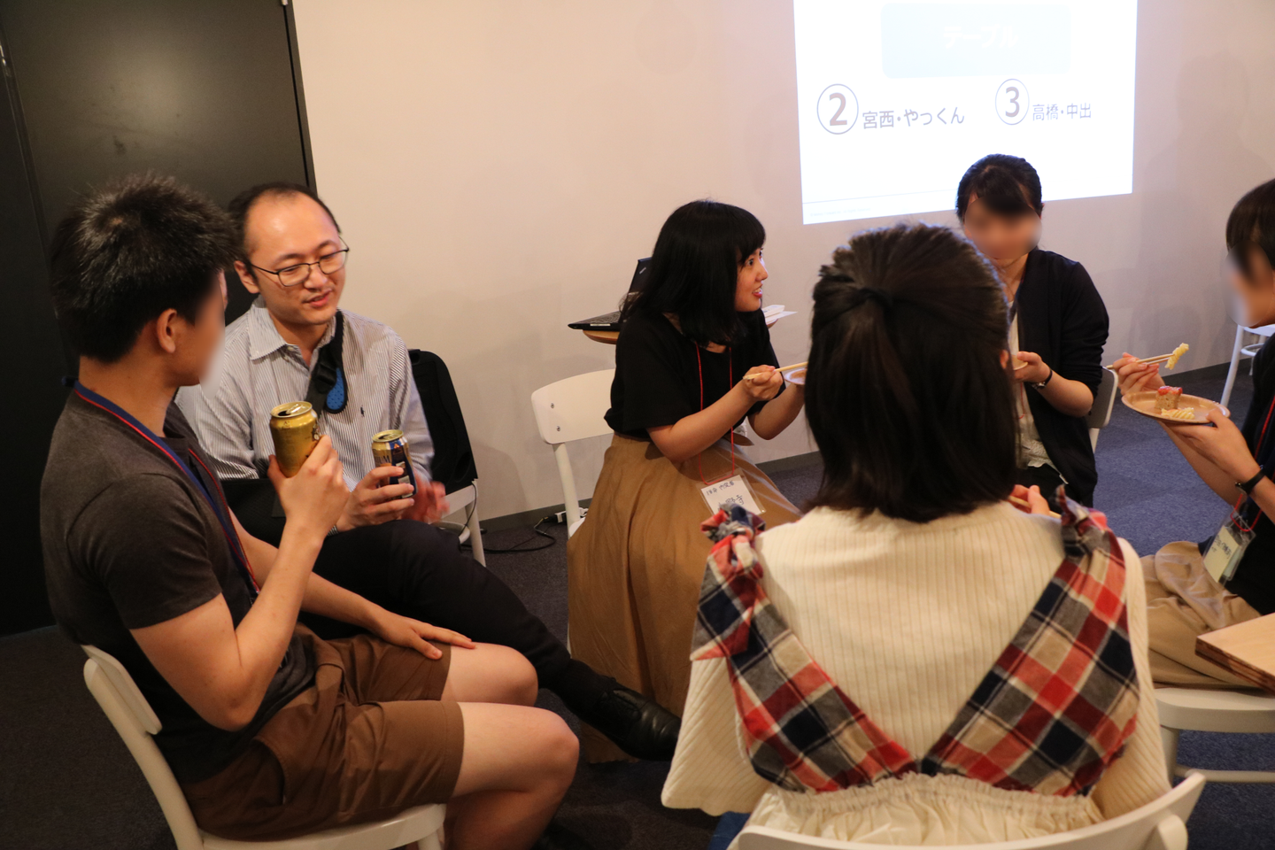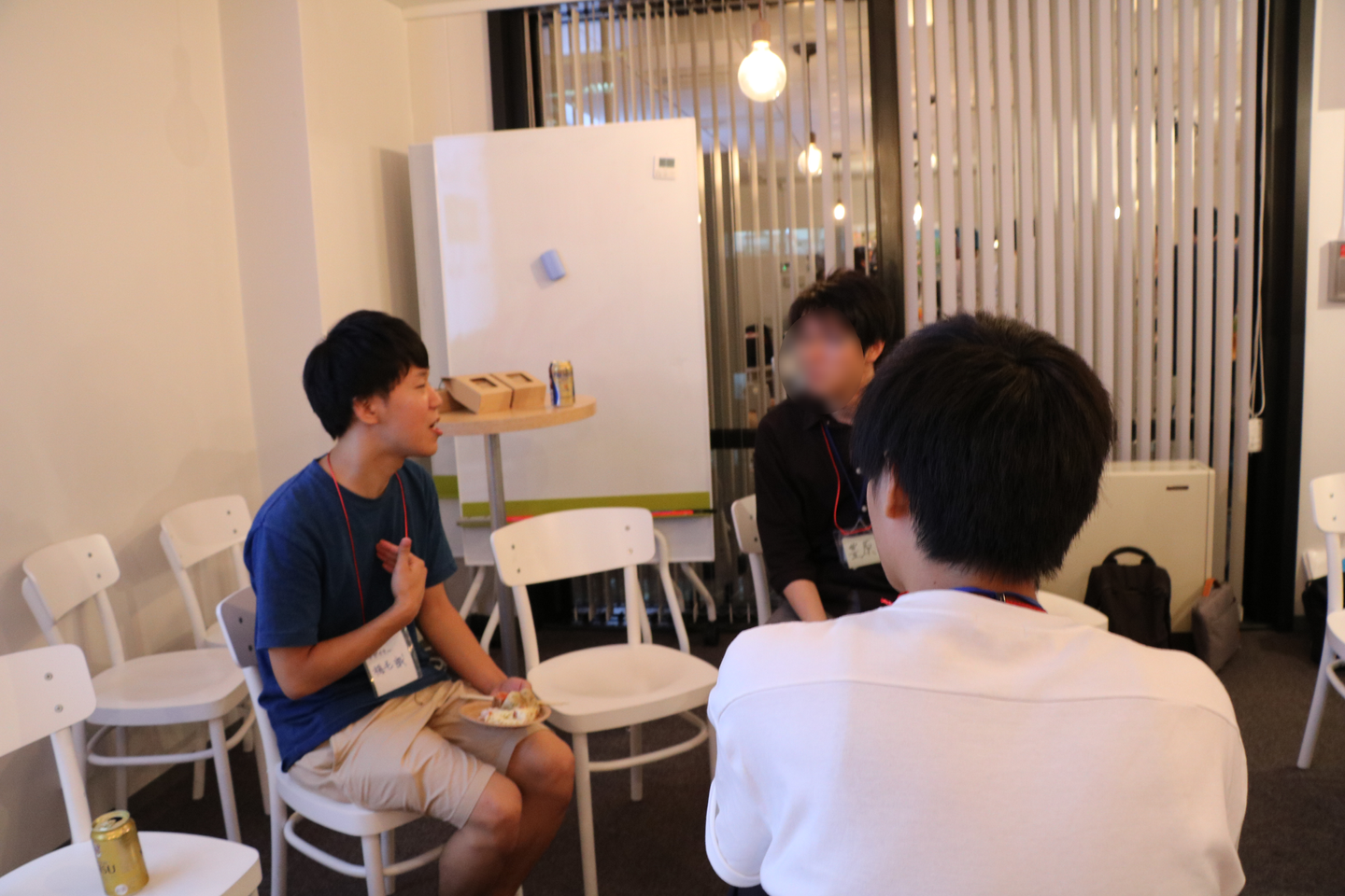 瀧さんの勉強会の後は、座談会&懇親会です。ここからは、社員や内定者、インターンのメンバーが参加させていただきます。まずは、カスタマーサポートの高橋さん。
