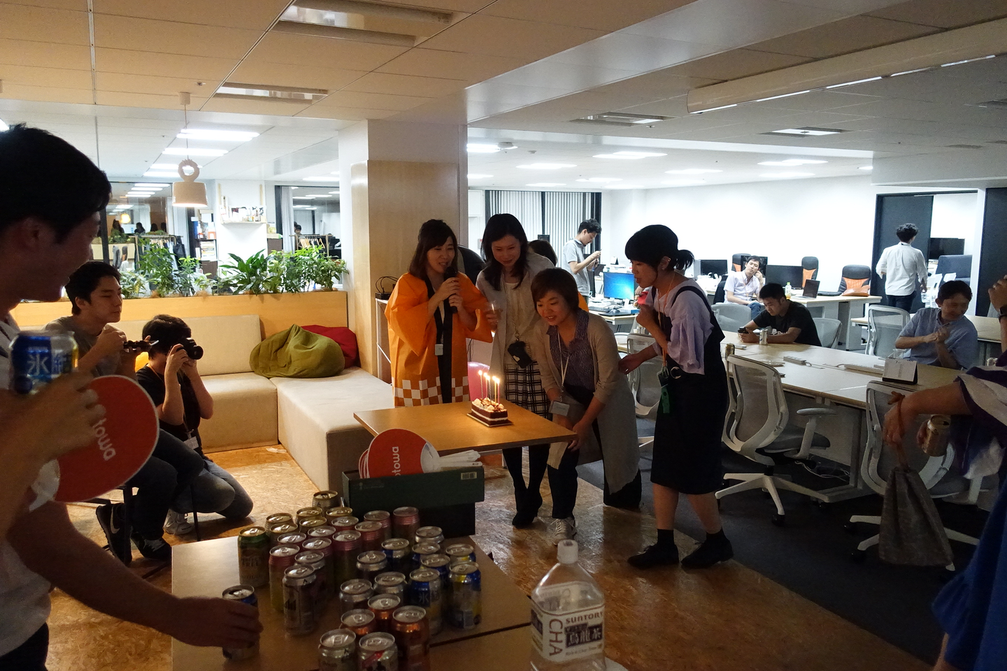 余談ですが、私が入社して「この会社素敵だな」と思ったことのひとつが、このオフィス内での懇親会です。豪華さや派手な演出はないのですが、オフィス内で開催されるため人と人との距離が近く、かしこまらずに話しやすいですし、手作り感があってアットホームな雰囲気を感じられます。