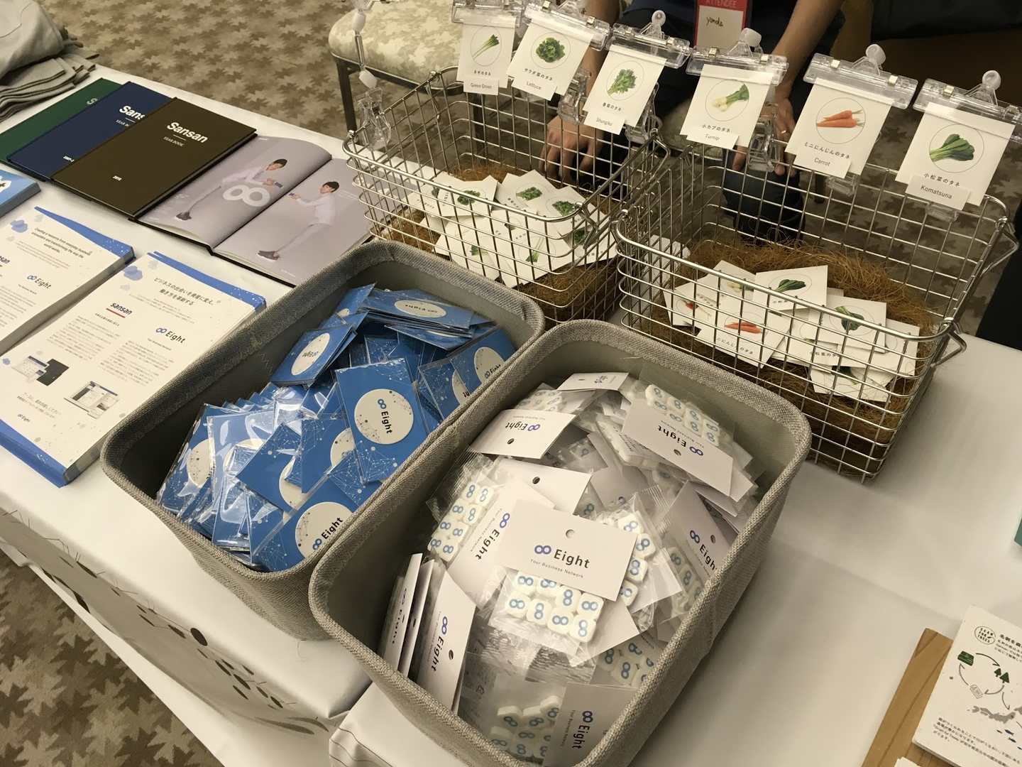 Sansanさんのブースには、Eightラムネや野菜の種が。ディスプレイの仕方もオシャレです。ちなみにラムネは美味しかったです(貰った)。