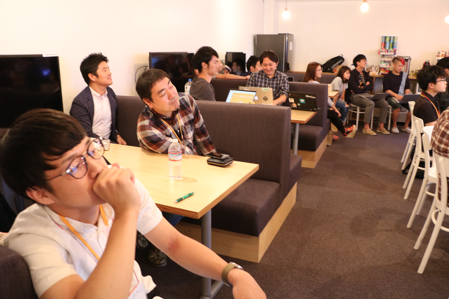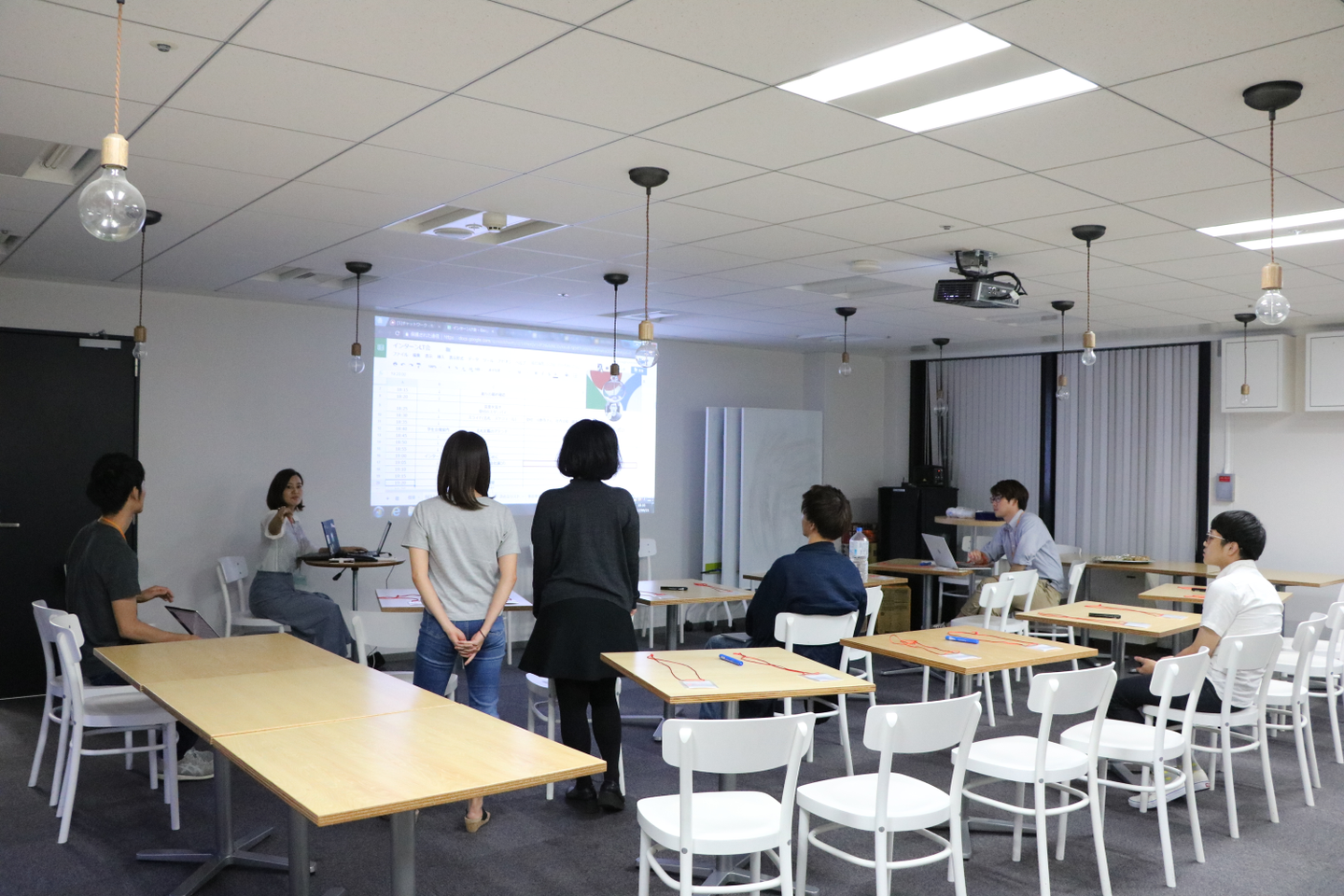 ↓発表者の部署のメンターや、本部長達が後ろで見学(笑)。