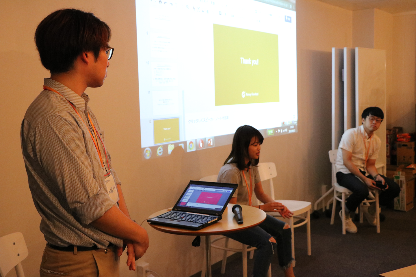 マネーフォワードに決めた理由というより、それぞれがどんな就活をし、どのように考えて今に至ったのか、会社を選ぶ際にその会社を外から見ていた時と、実際に中で働いてみてのギャップがなかったのか…などをプレゼンしてくれました。