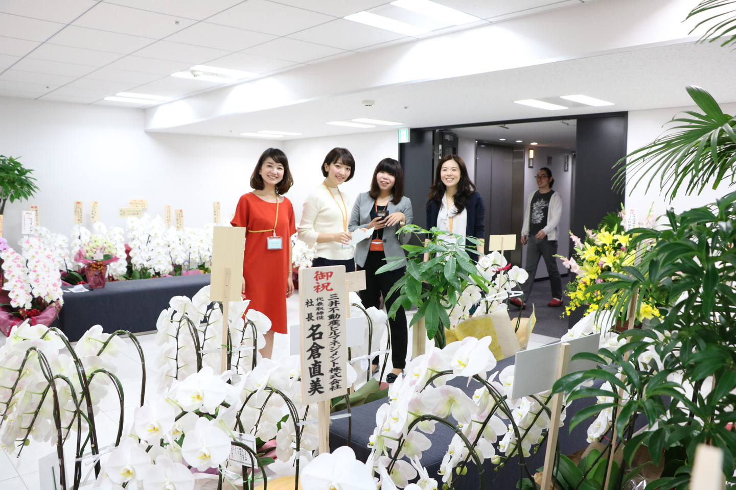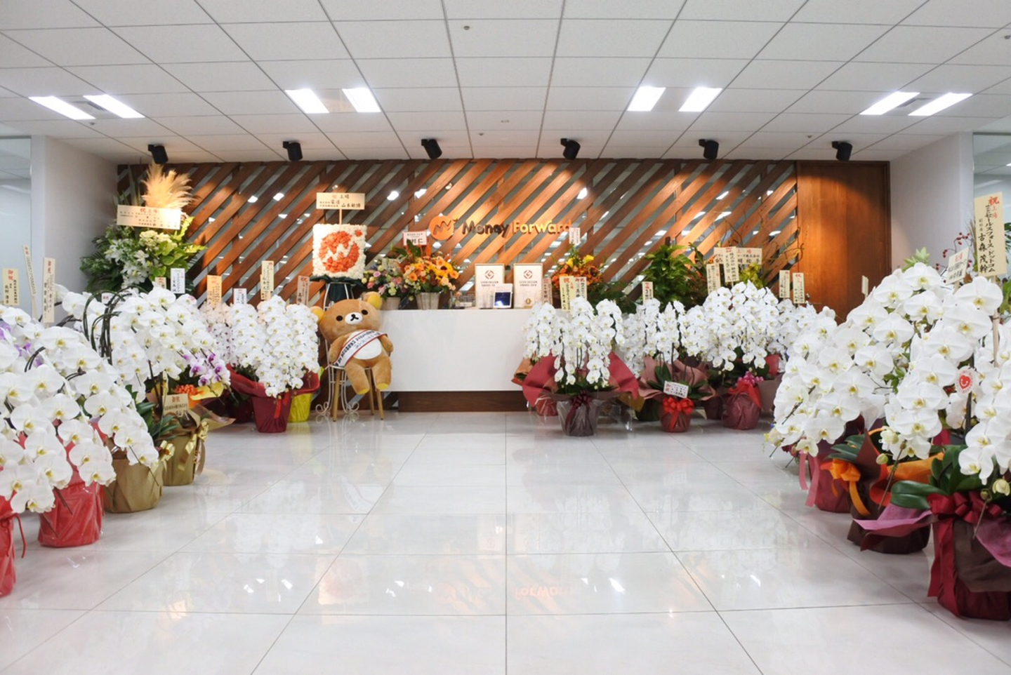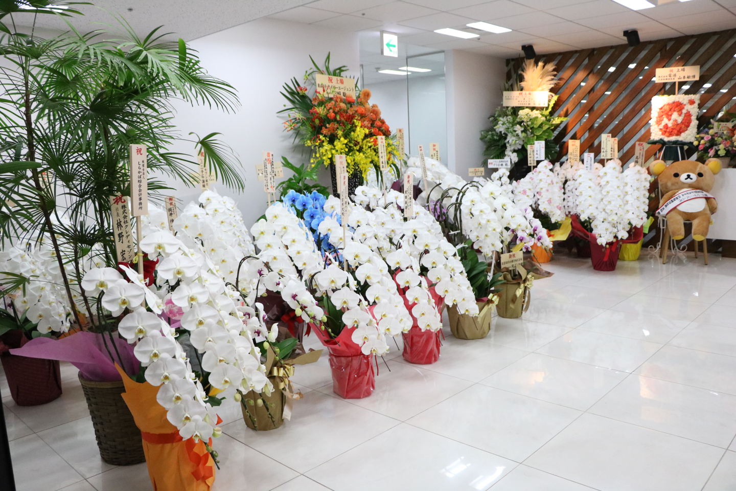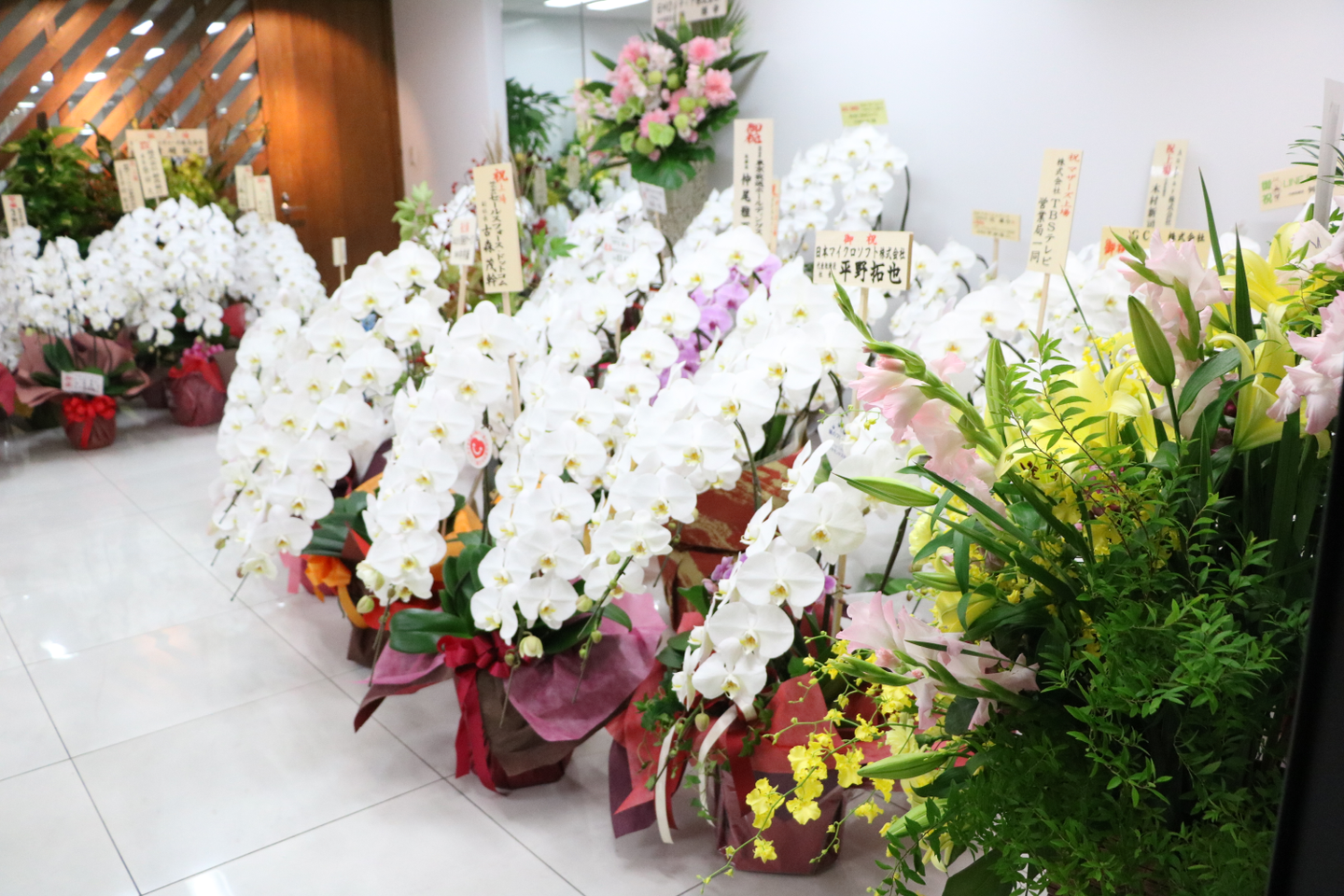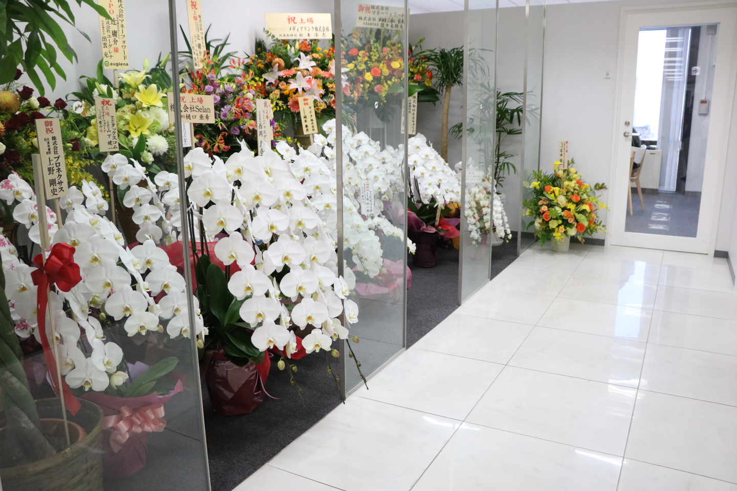 上場の御祝いということで、株主様、お取引先様をはじめ、多くの皆様からお花が届きました。エントランスがうまる程のお花…!皆様、本当にありがとうございます。心より感謝申し上げます。