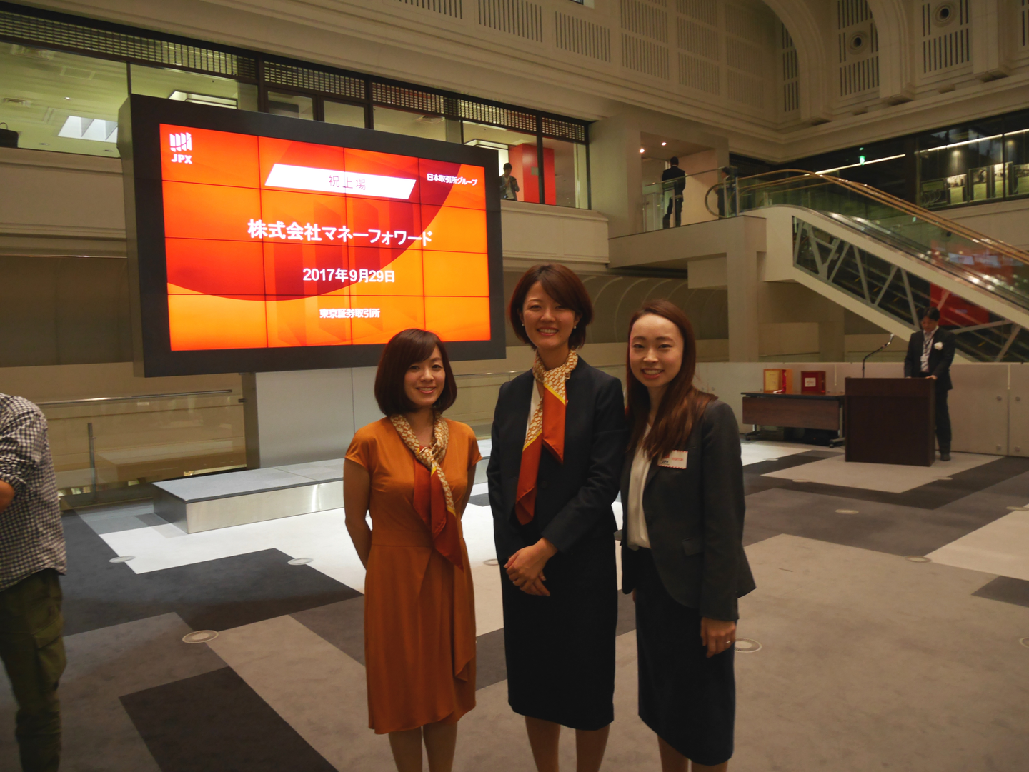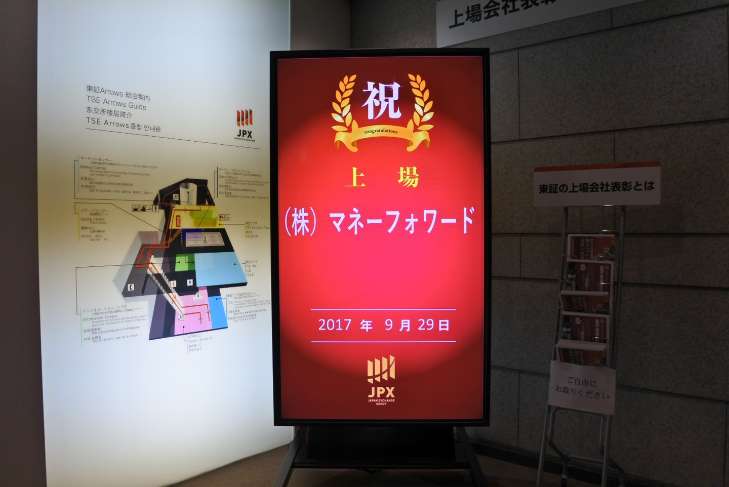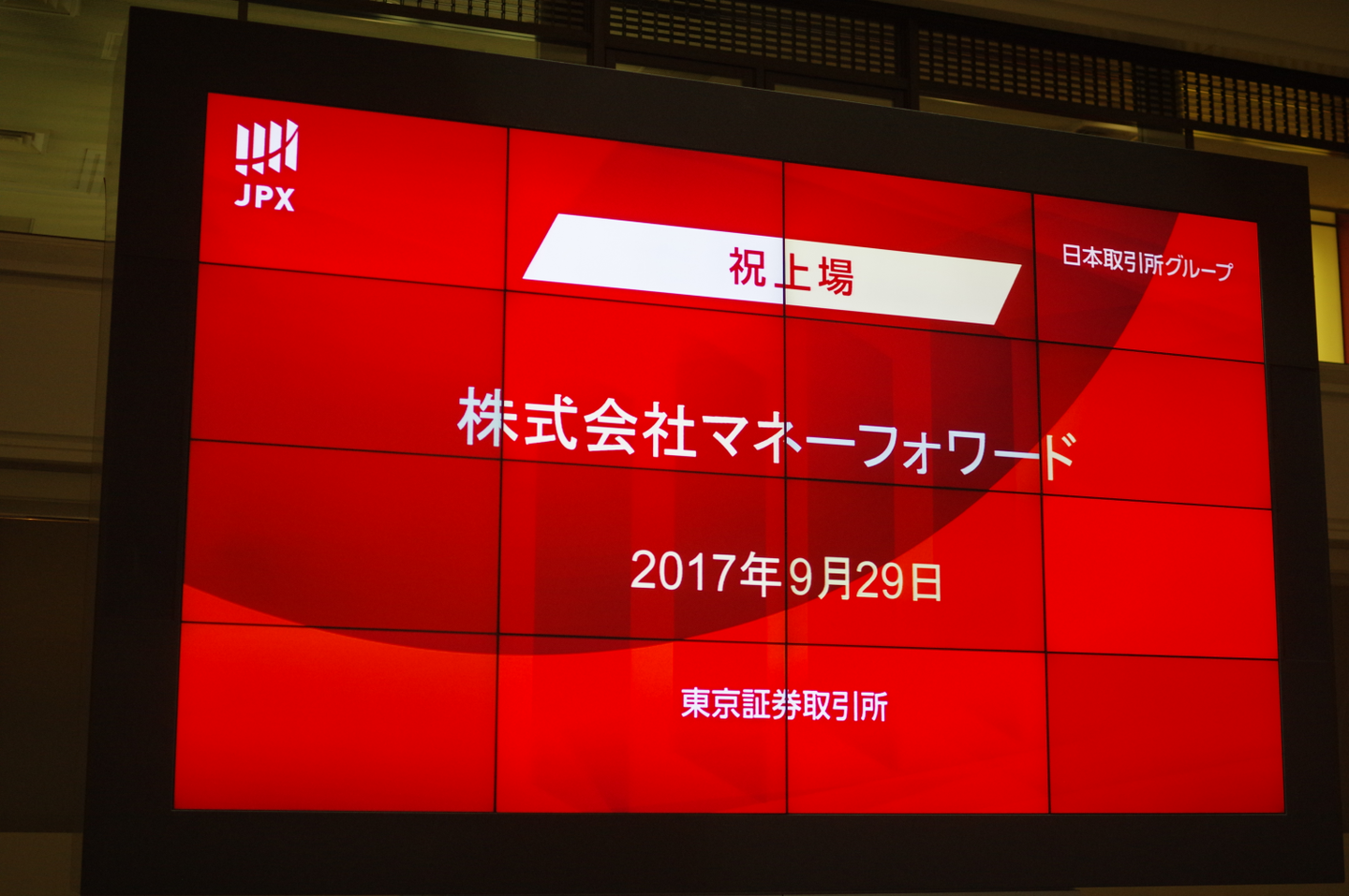 こんにちは。マネーフォワード広報の青木です。本日のプレスリリースにてご報告の通り、マネーフォワードは2017年9月29日に東京証券取引所マザーズ市場に上場いたしました。