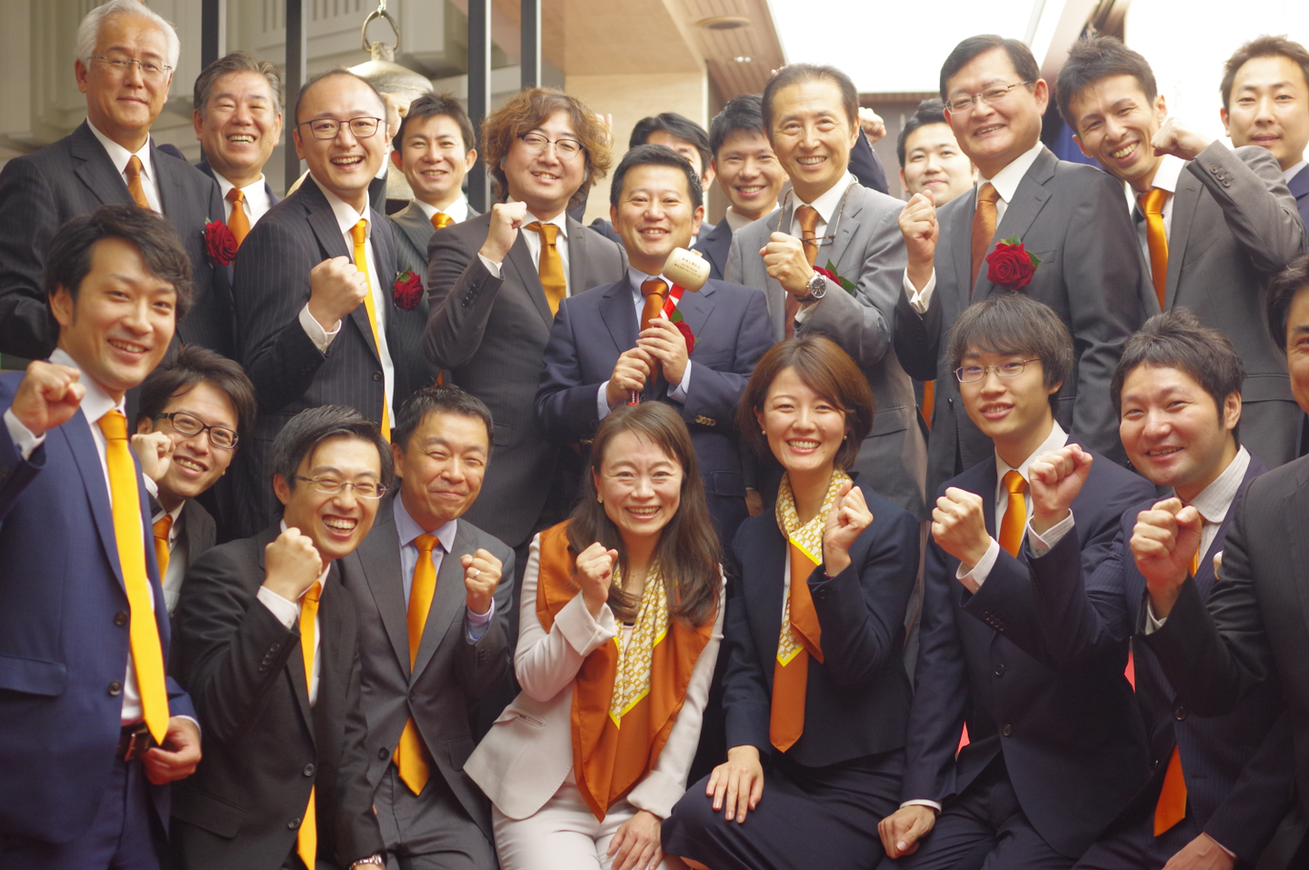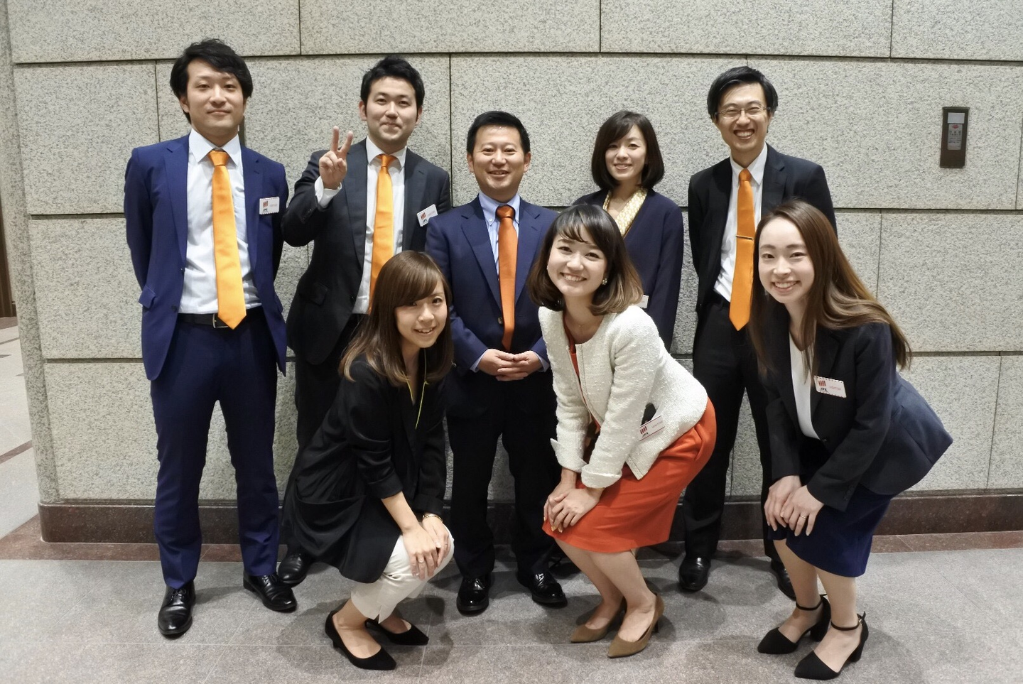 そして記念撮影です。この日のオレンジ色のネクタイは秘書の田中さんと広報アシスタントの鈴木さんがセレクトしてくれました。