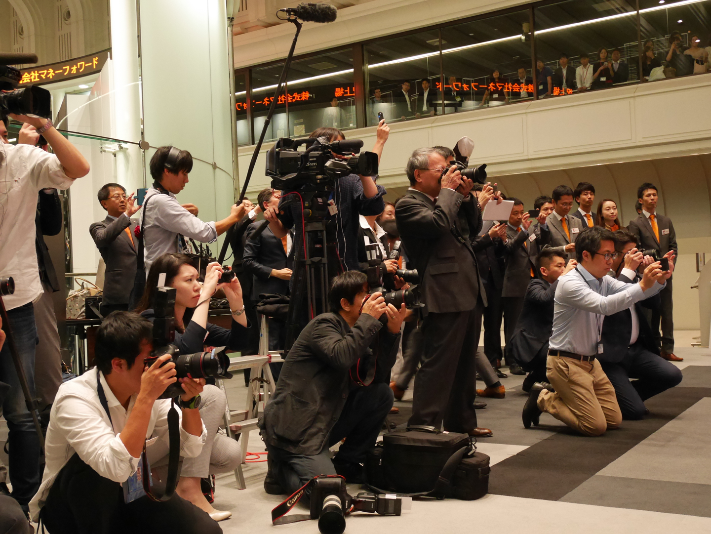 東京証券取引所 (以降「東証」)では、以下のスケジュールで上場セレモニー、代表のストックボイス出演、兜倶楽部での記者会見を実施いたしました。