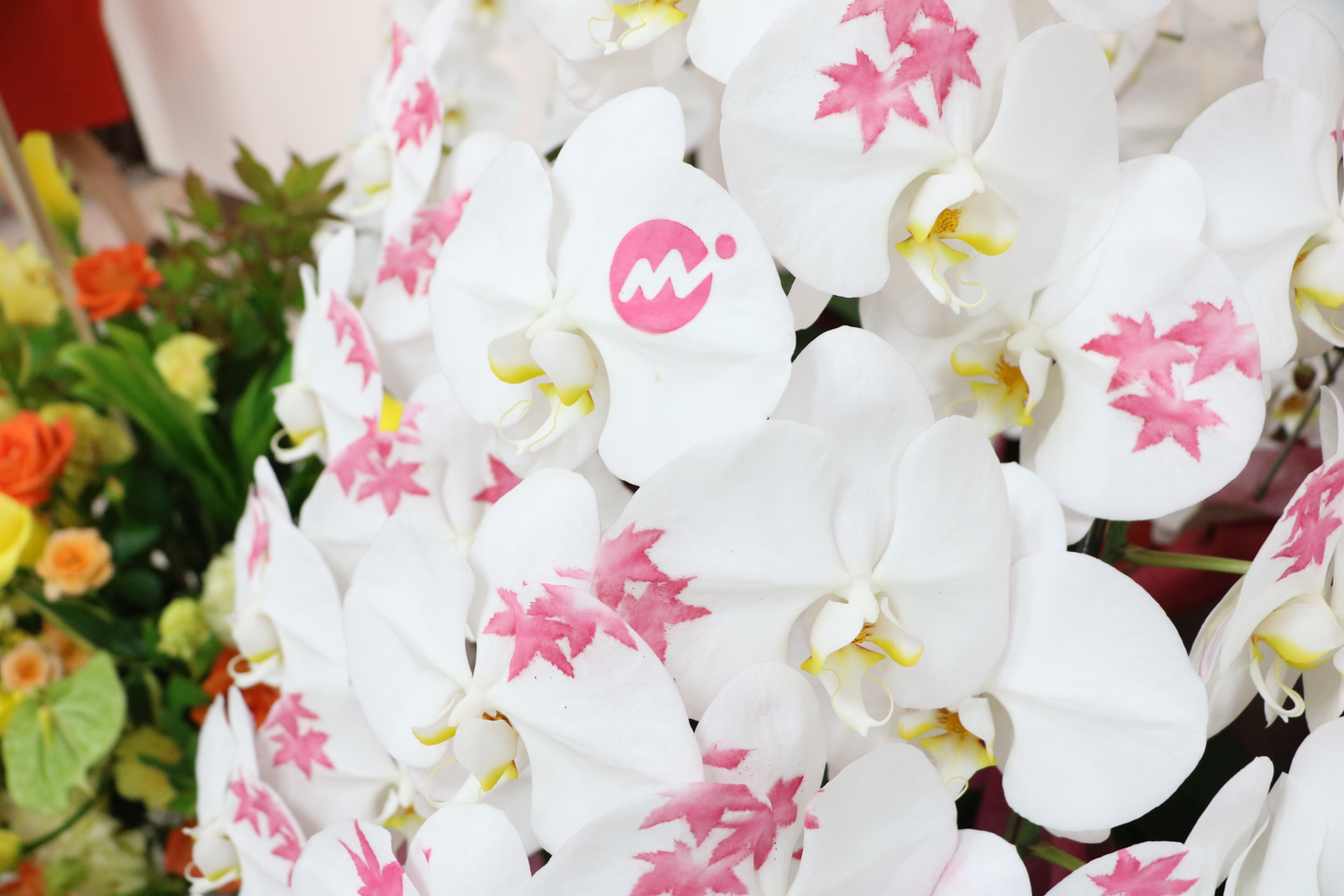 すべてはご紹介できないのですが、一部をご紹介させていただきます。こちらは胡蝶蘭にロゴをプリントしていただいています。