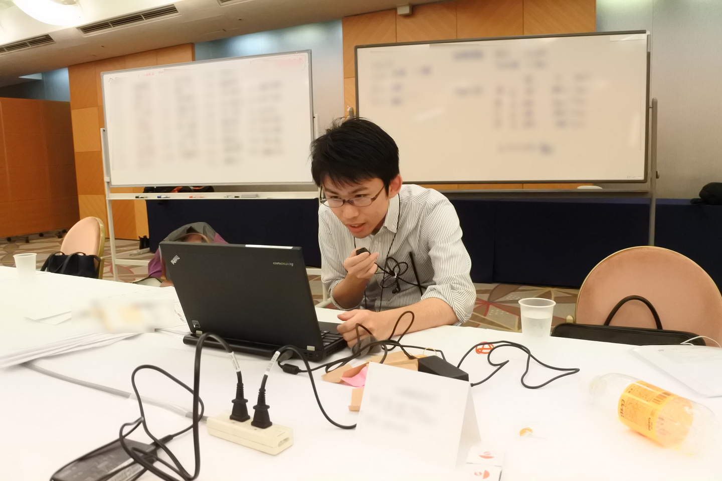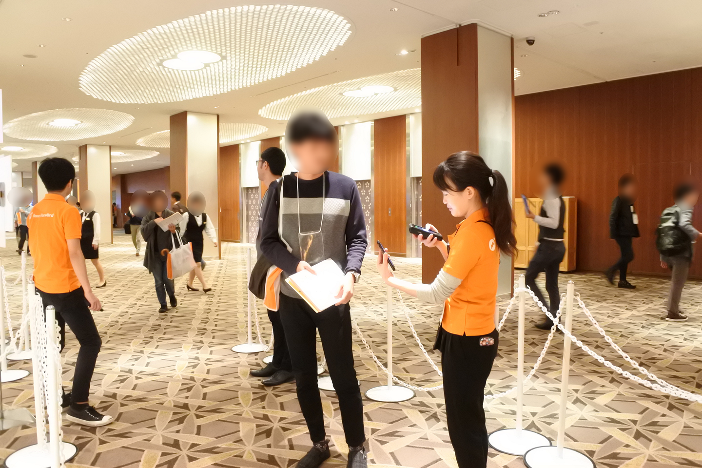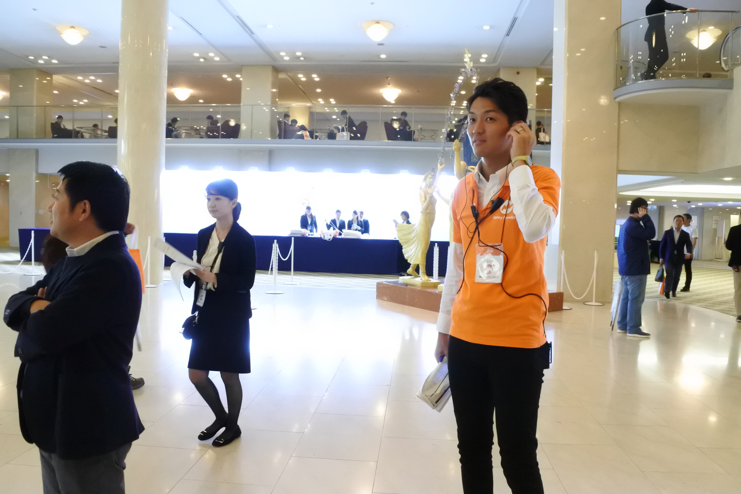 こちらも同じく指示を出しつつ、イベント全体を進行する新後閑さん。この時は、質問を受けて会場へ行く瞬間でした。