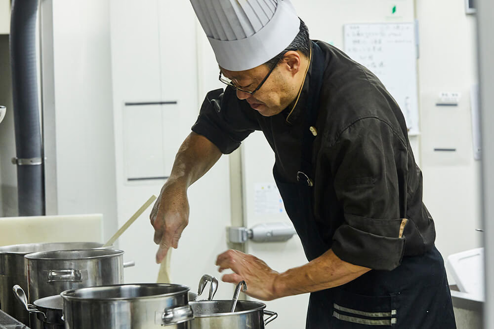 飯野 とりあえずこれしかないのかなと思って。その会社が良かったのは、全部手づくりだったこと。いろんな食堂でいろんな経験をさせてもらいました。漠然と料理の世界に入ったから、最初についた料理長が、すっごく怖くて厳しい人でよかったです。逆に、手取り足取り優しく教えてもらっていたらここまで伸びていないかな。突き放された状態で「食いついてこい」みたいな方が僕は合っていたんだと思います。