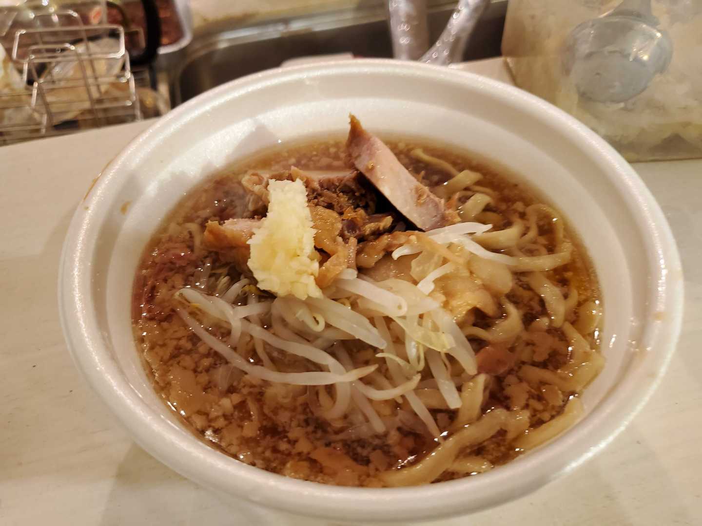 鍋二郎は、一部店舗で実施しているラーメン二郎のテイクアウトサービスです。今回は、オフィスから近いラーメン二郎 目黒店へお邪魔しました。実施時は、お店への事前予約は特に不要なのですが、二郎からオフィスまで、香り漂う大量のスープやトッピングをいかにスマートに持ち帰るかを考える必要があります。