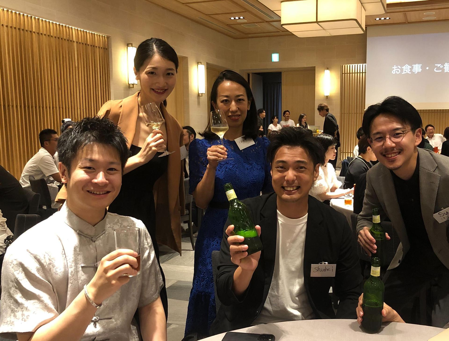 ▶︎最後に、同じテーブルのメンバーとパシャリ。前列左は、Rest&Relax事業/株式会社太陽 代表取締役のRyo(川嶋)、いつもチャーミングな方なので、チャイナ服に全く違和感なく、当日のツッコミを失念してしまいました。きっとMOON-X上海メンバーWelcomeという意味なのかな?