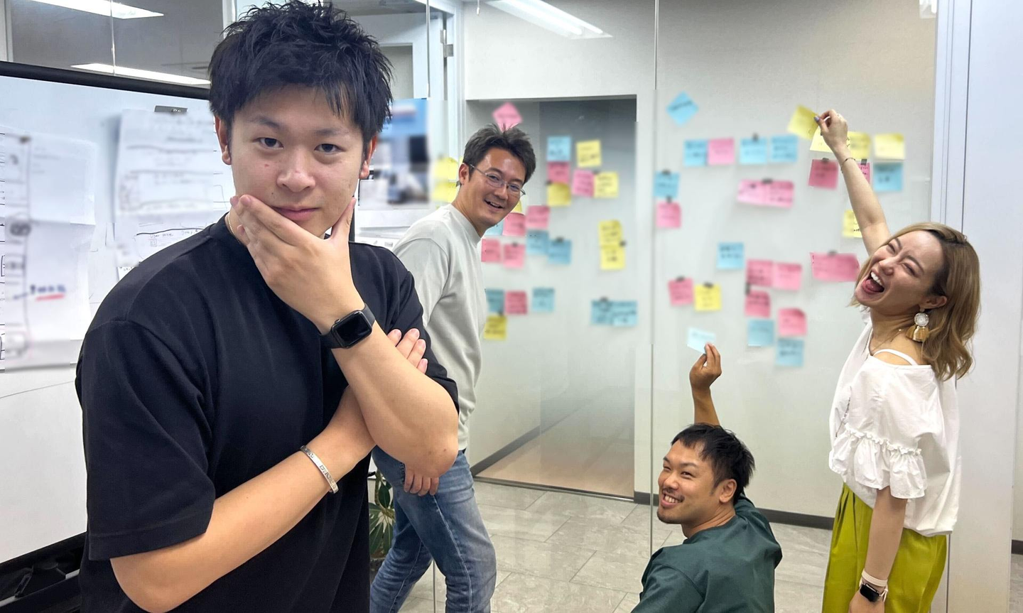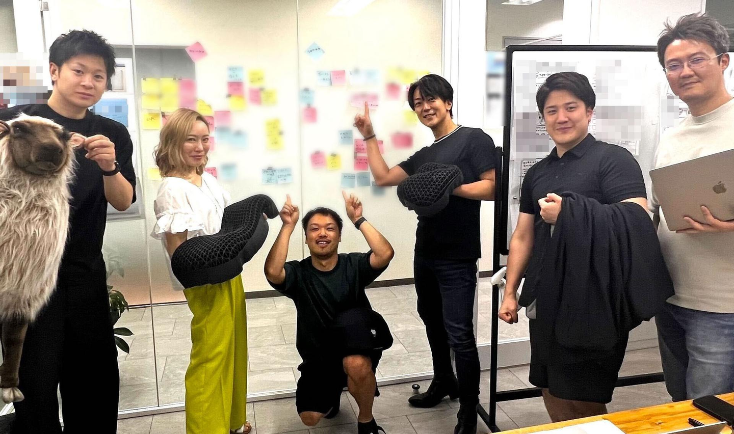 CCO(Chief Creative Officer)のShugo(栗山)が準備をしてくれていました。「ワイワイ楽しくやりたいじゃーん♪」と、さすがはメタやインスタグラムチームに向けても多くのワークショップを主催してきた凄腕ファシリテーター!空気作りもうまい!(ちなみに写真で決めポーズをとっている「ヒツジのいらない枕」を運営する太陽代表のRyo(川嶋)は、スピーカーのサイズの小ささに一番食いついていました笑)