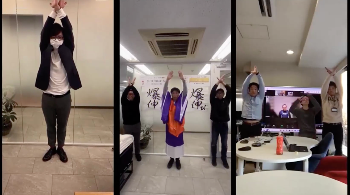 せっかくだから、映画館の大画面でオリジナルの動画を流したいということで、会社、部署ごとに動画を撮影し、オープニングムービーを作成しました。