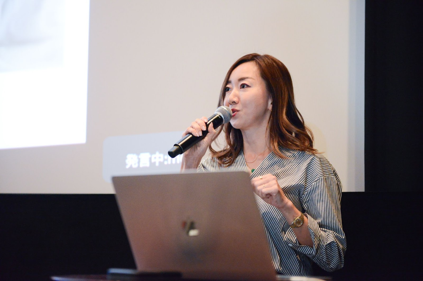 登場時の爆笑から一転、全員真剣な表情でプレゼンを聞いていました。