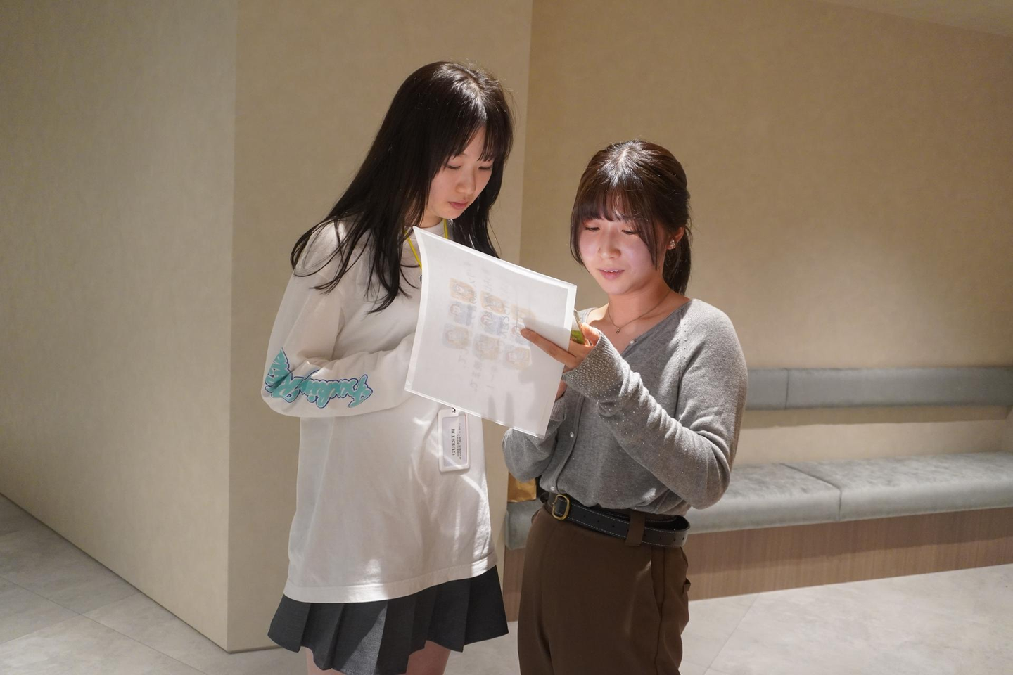 写真:同じマーケティングインターンメンバーと相談