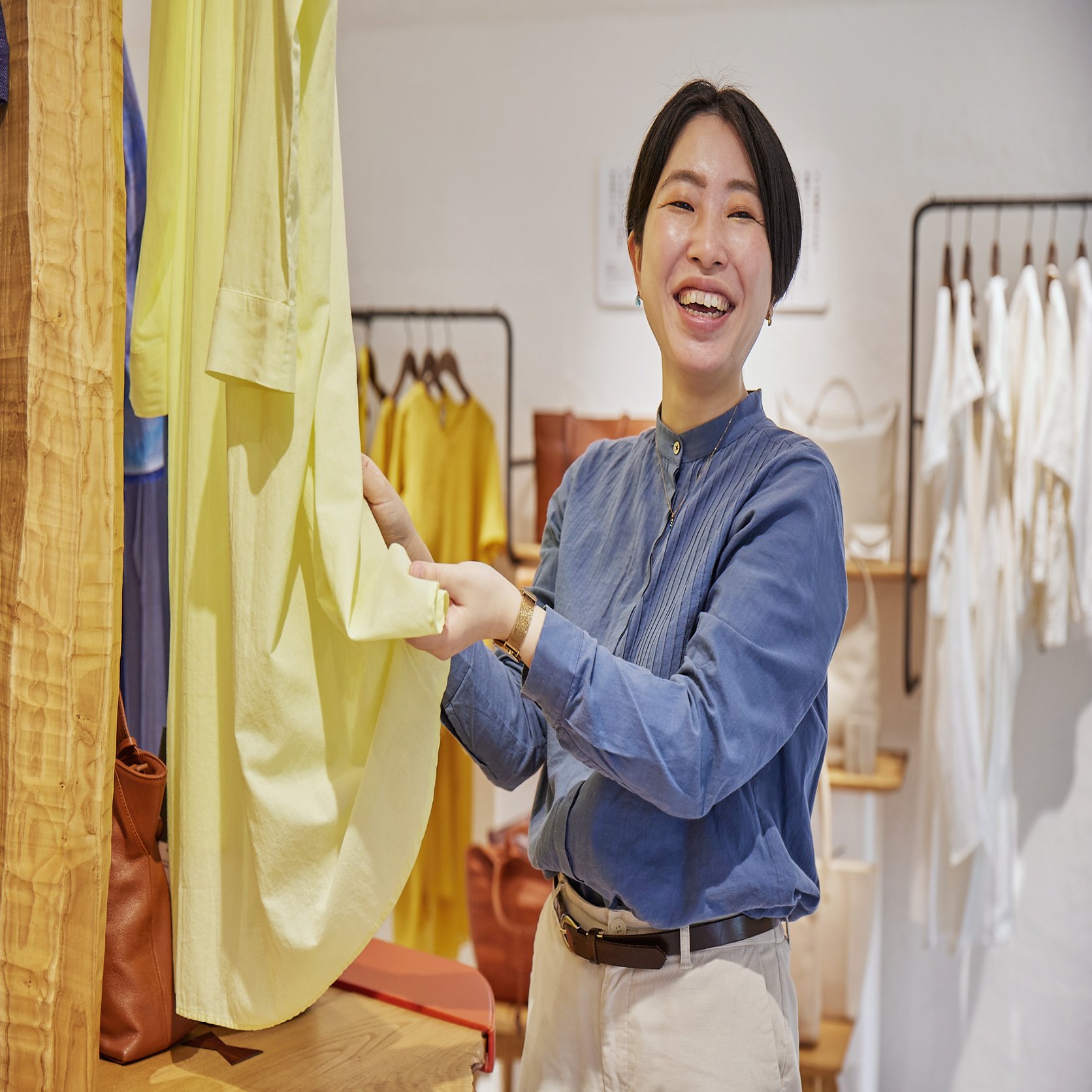 吉浪優香 コミュニケーションデザイン部門 PR Promotionグループ ITベンチャーで営業、マーケティングを経験後、起業を経て、入社。マザーハウス入社後は、コレド室町店などで販売スタッフを務めた後、レザーバッグ回収やリメイクを担う「R事業」の責任者に。本店隣にオープンした、全国でラスト10点以下のレアなプロダクトを届ける「最後の一品店。」の立ち上げも担う。現在は、PR Promotionグループで、マザーハウスを新しい方に知ってもらうために、新規企画やSNS発信を担当している。