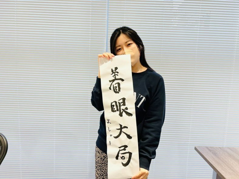 その中でも視野を狭めないように、物事を大きくとらえ本質を見抜いて仕事をしていきたい!という意味をこめて書きました!