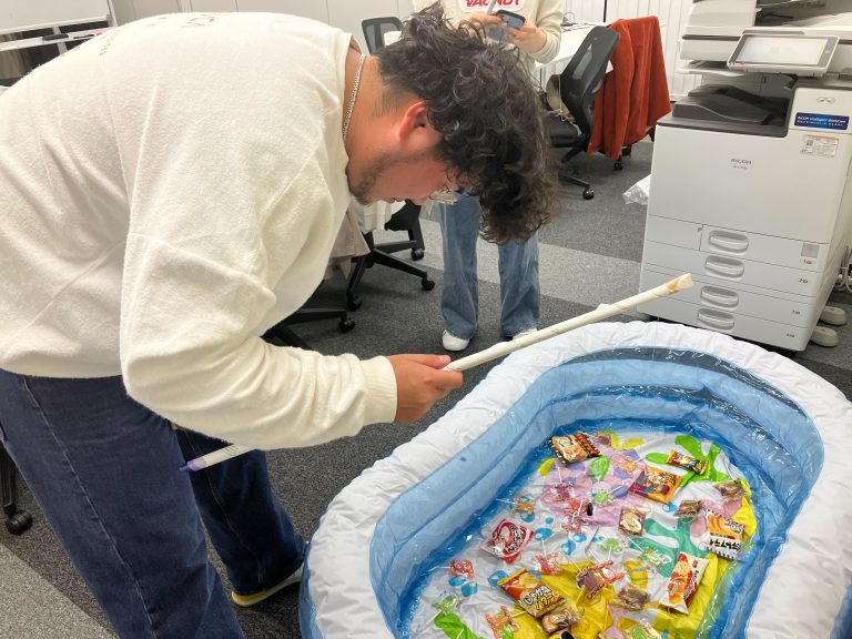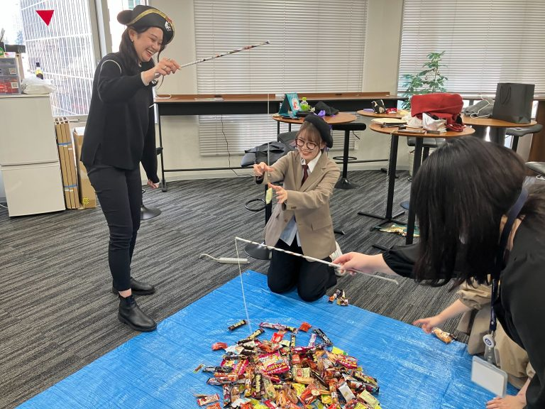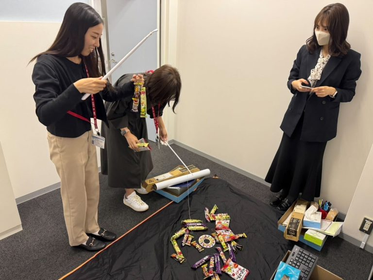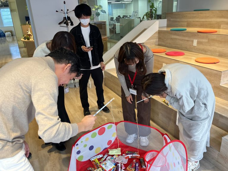 また今回は仮装だけでなく、チームメンバーと交流が出来るように社内で行う「お菓子ボビング」というゲームも開催しました。
