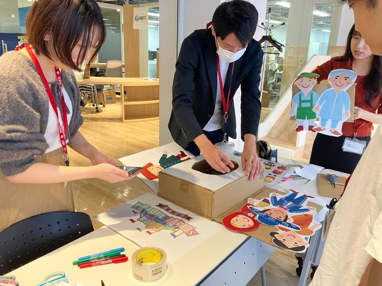普段は違う部署のメンバー同士ですが小道具作成をきっかけに会話が弾んでいましたよ!