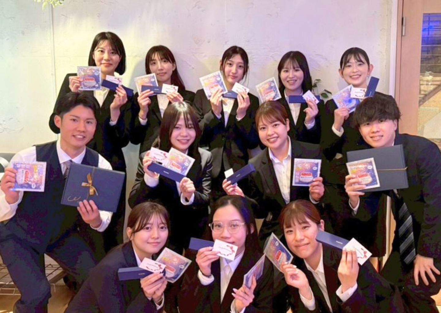 懇親会の終盤には、社長であるダンディから新卒社員の皆さんへ、「入社おめでとう」の気持ちを込めたサプライズプレゼントが贈られました。