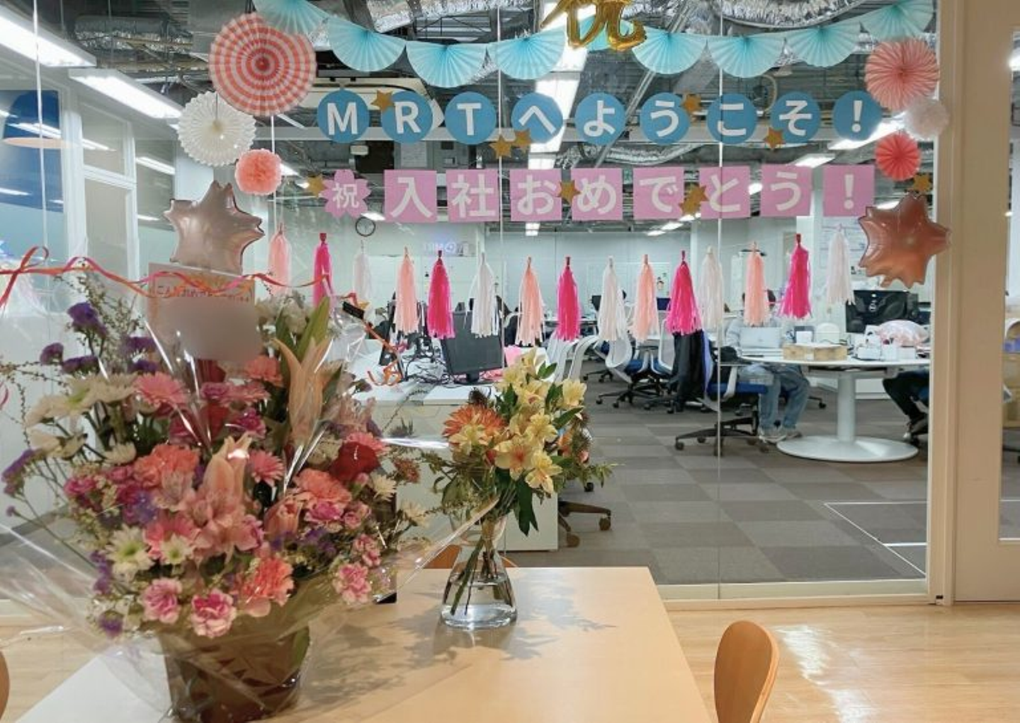 新卒社員の皆さんに最高のスタートを切ってもらうため、前日から社内の飾り付けを実施。