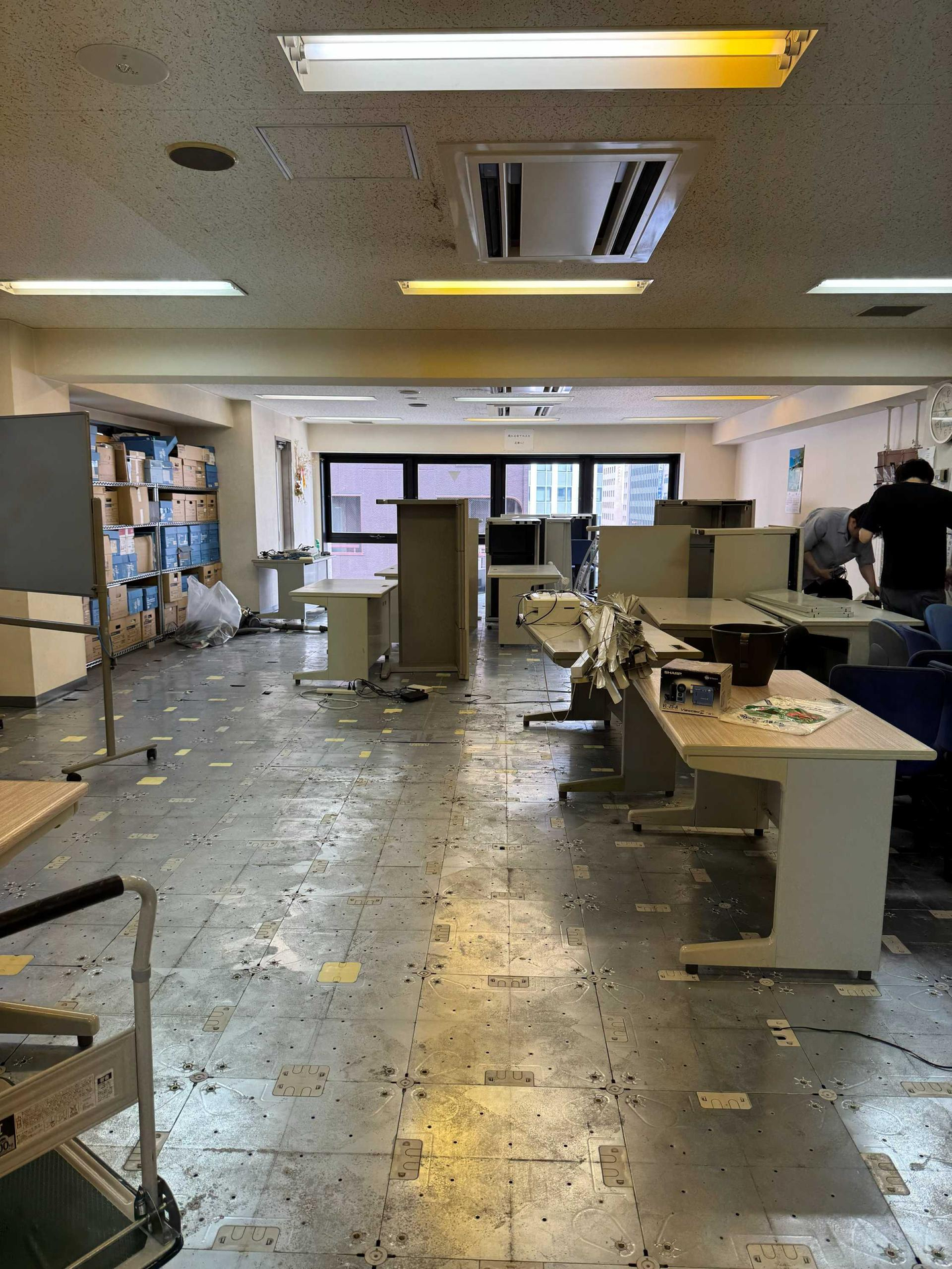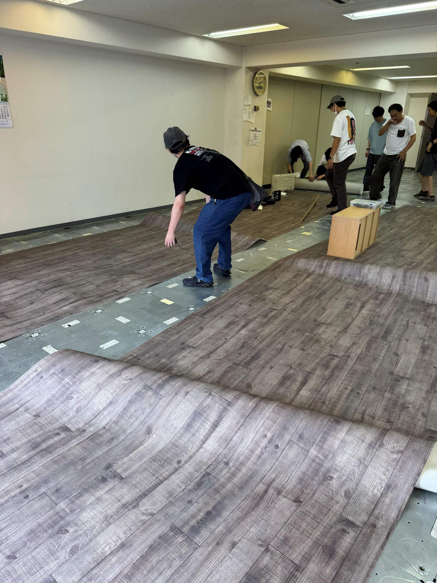 10数年分のホコリと格闘しながら、みんなで黙々と床を剥がしていく。普段コードを書いている手で、工具を握る。エンジニアというより、もはや工事現場(笑)