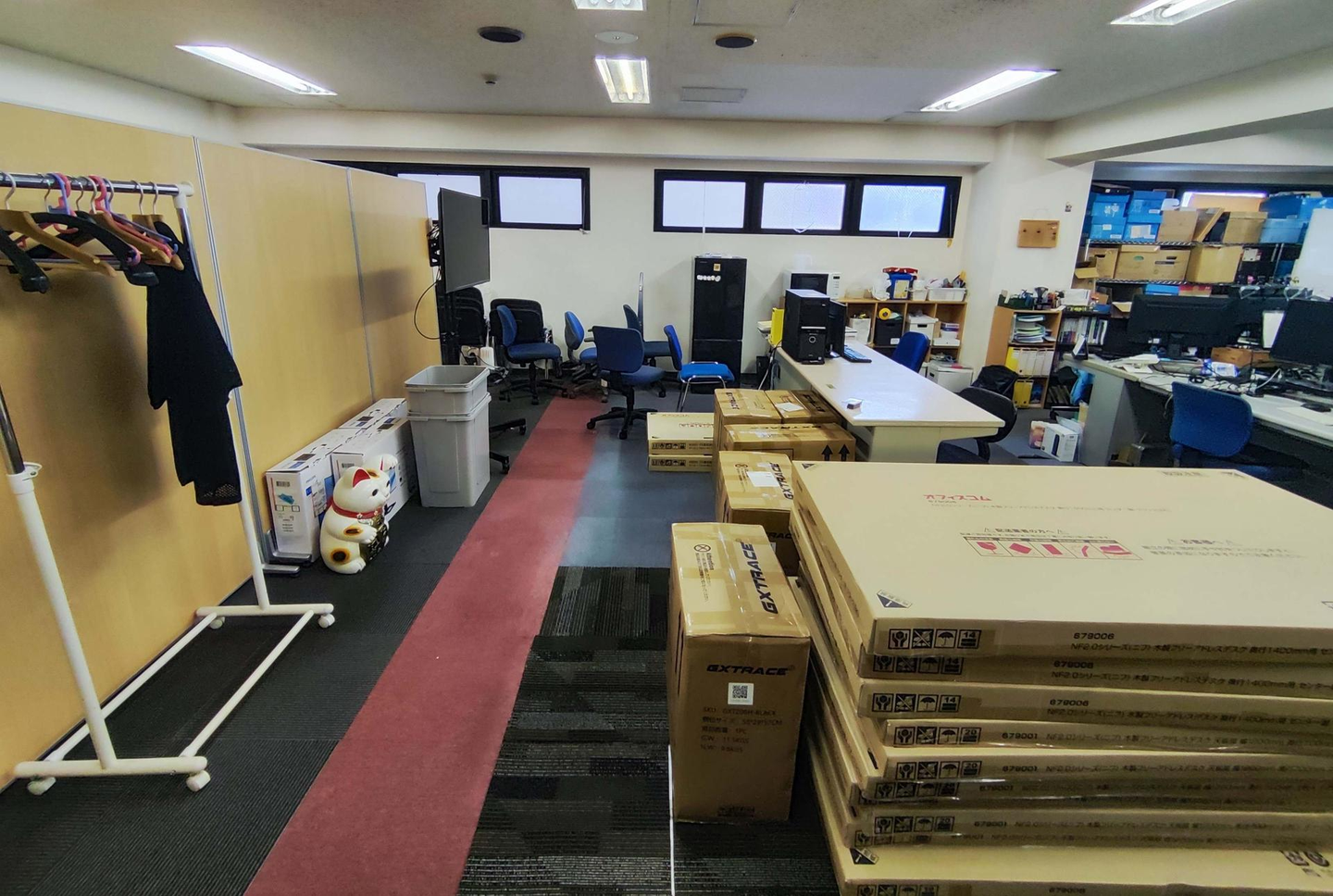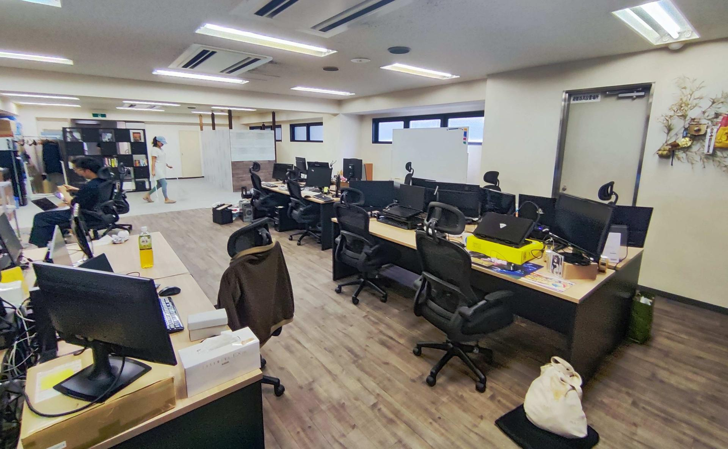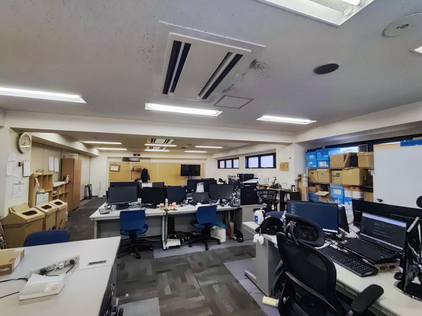 古き良き昔のオフィス。OA床、年季の入った壁、使い込まれたデスク。決しておしゃれとは言えないけれど、ここで生まれた伝説は数知れず。