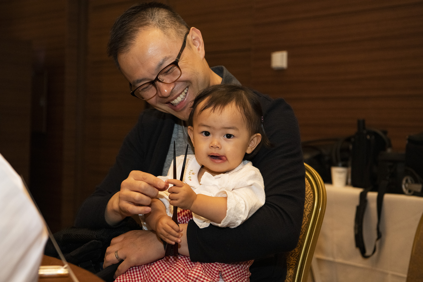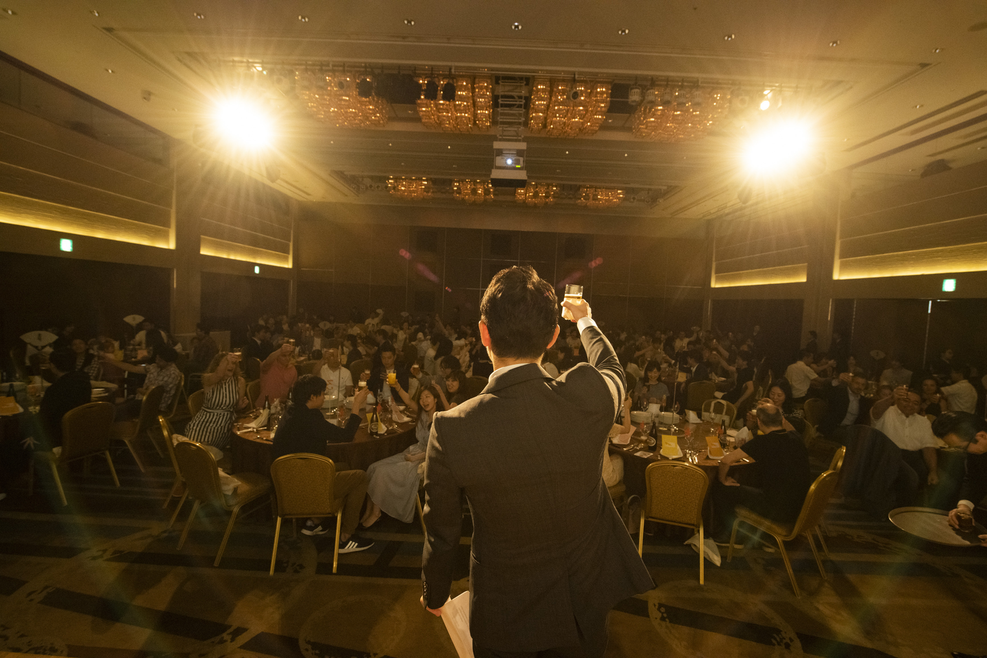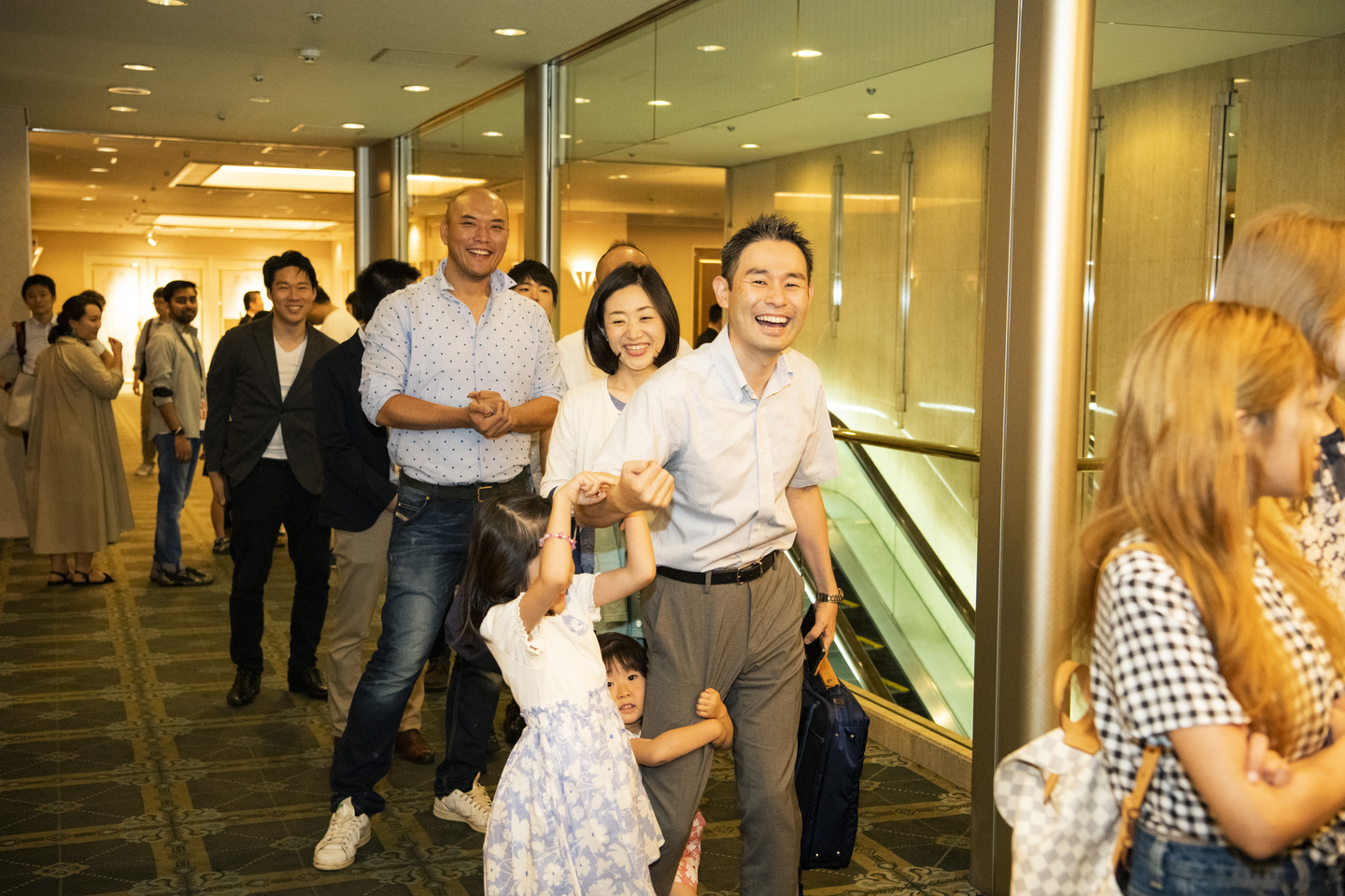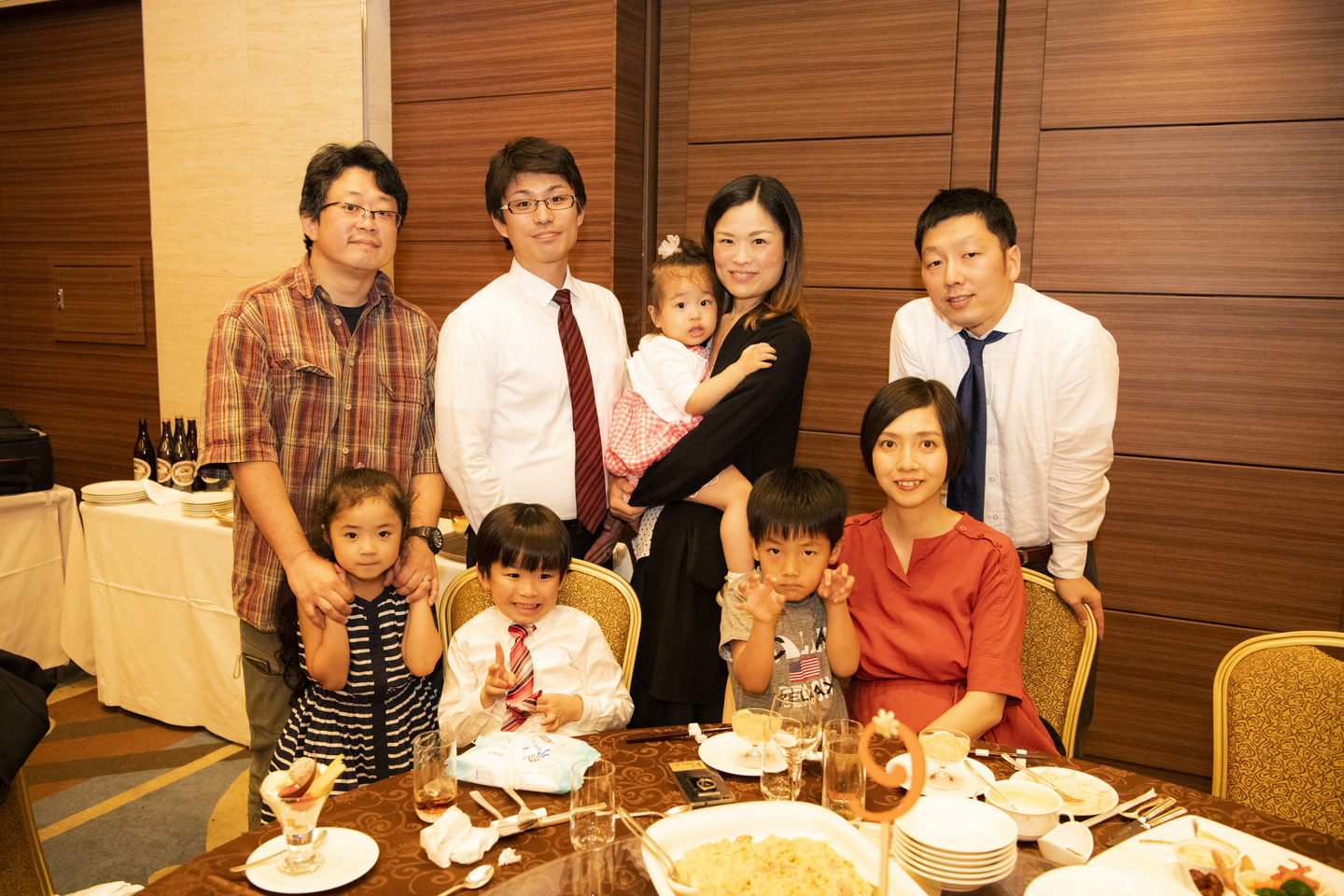 都内ホテルで行われたパーティー。結婚式のような、豪華な会場でした。いつも私たちを支えてくださっている大切な家族もお招きし、みんなほっこりと、いい笑顔をしています。