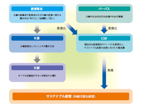 当社グループには、CSR活動を開始する以前から「経営理念」「社是」「社訓」「パーパス」があり、当社グループの従業員が大切にしている考え方です。