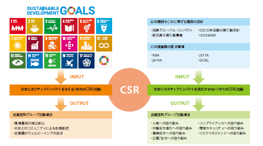 上図に示したように、当社グループのCSR活動は「社会にポジティブインパクトをもたらせる(攻めのCSR)活動」と「社会にネガティブインパクトを発生させない(守りのCSR)活動」の2つに大きく分けています。