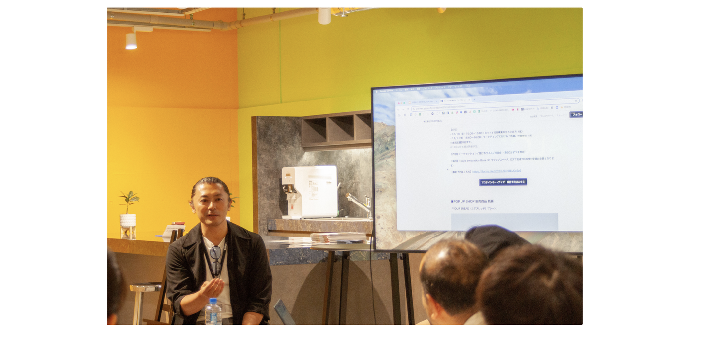 また、ラウンジスペースでは最新の食とビジネスについての少人数ミートアップも開催!10月18日には「ヒットする新事業の立ち上げ方」をテーマに、日本を代表するマーケター長瀬次英氏と、YOUR MEAL ブランド責任者の山岡さんが、参加者の皆さまとざっくばらんにお話ししました!