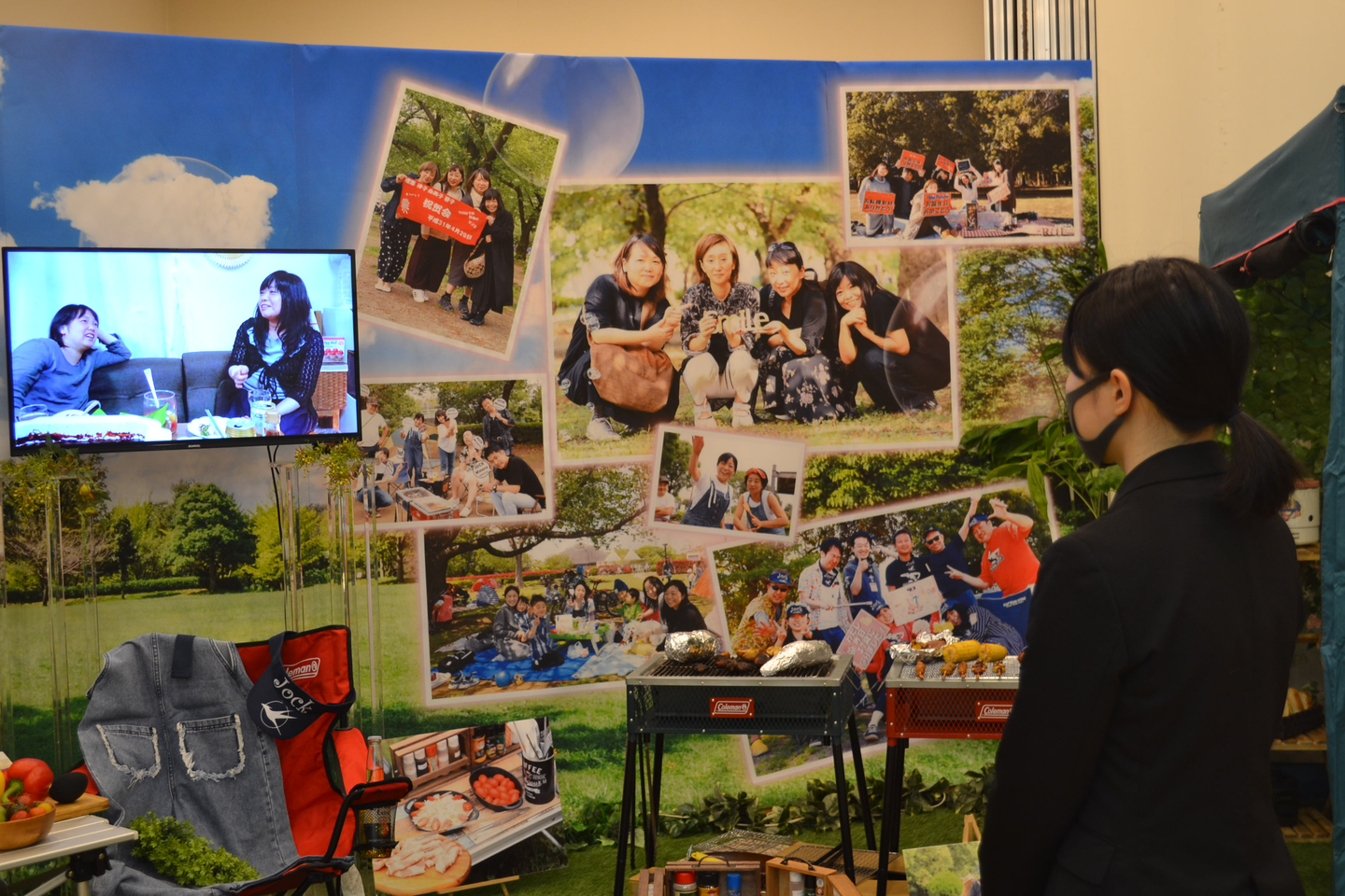 実際に使っていたテントやバーベキューセット、お肉や野菜は本物を置くことで、リアリティを追求。