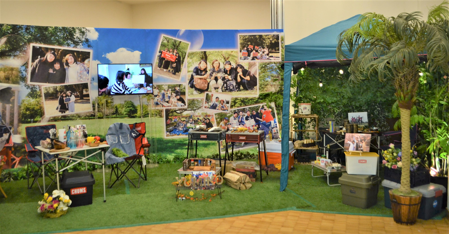 式場横には「由美子の楽しみ」をテーマに、趣味のカメラ、バーベキューなど、由美子さんがまるでそこにいるかのような空間を作りました。