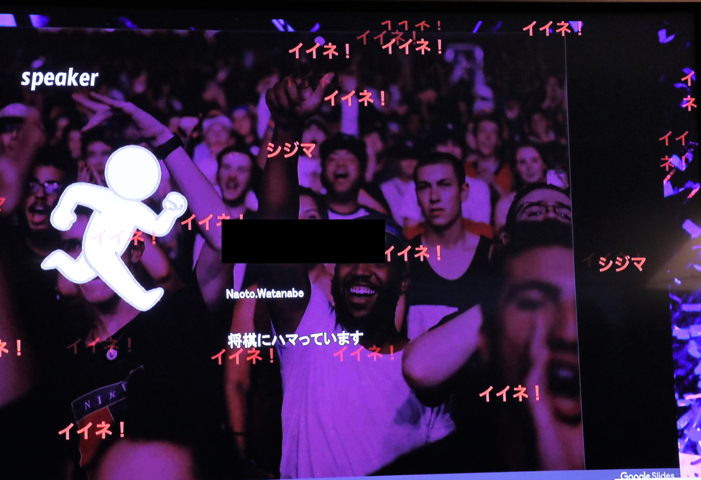 各チームの報告会が始まる前にエンジニアの渡邊さんが”イイネ”機能を配布してくれました。QRコードを読み取って、スマホに表示されるボタンをタップすると画面にイイネが表示されます。粋な計らいですね~!当初想定していた上限20万イイネを超えたため、課金して有料プランに切り替えました。笑