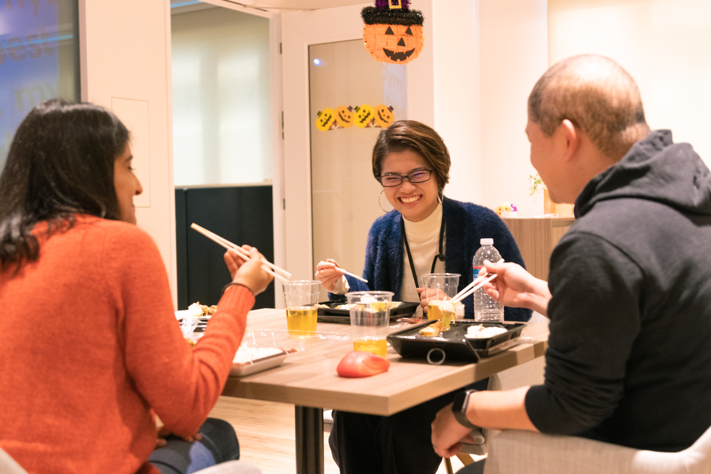 DELこと “できるだけ English Lunch” は、週に1回ランチタイムに開催されています。名前のごとく、できるだけ英語でコミュニケーションを取りながらランチを楽しみます。そしてDELに参加するメンバーは会社からお弁当も支給されます!英語もお弁当も楽しめるDEL、その立案者の海外チームの室伏さんにお話しを伺いました。