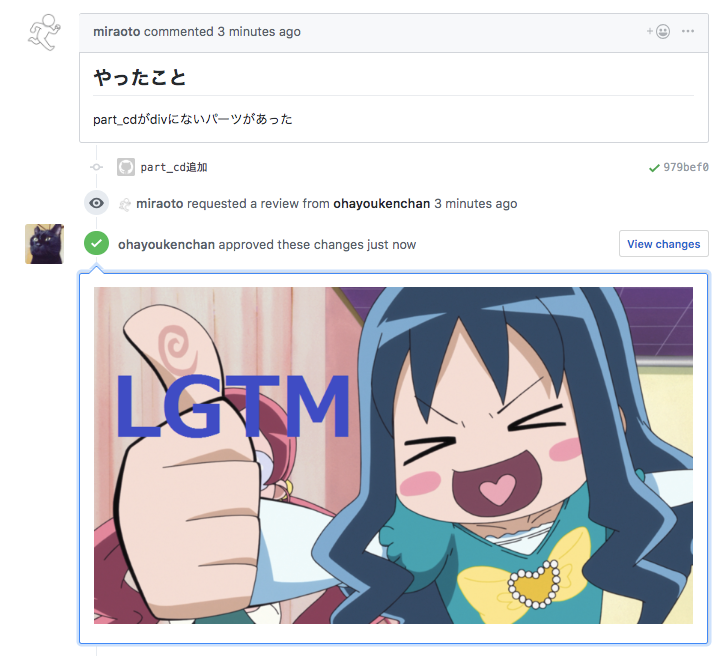 ほぼ毎日チームメンバーからプルリクエストがくるのでコードレビューをします。コードももちろんちゃんと確認しますが、お疲れ様でしたの意味も込めて LGTM画像は細心の注意を払っています。