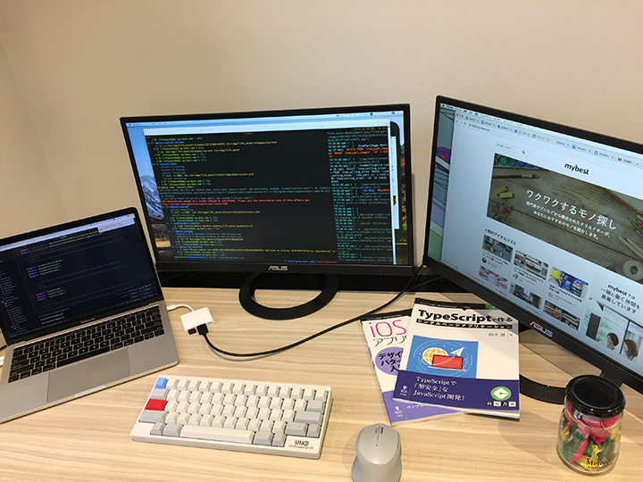 こちらは私の作業机です。入社時にマシンやキーボードなど要望を受け入れてくれたので快適です。