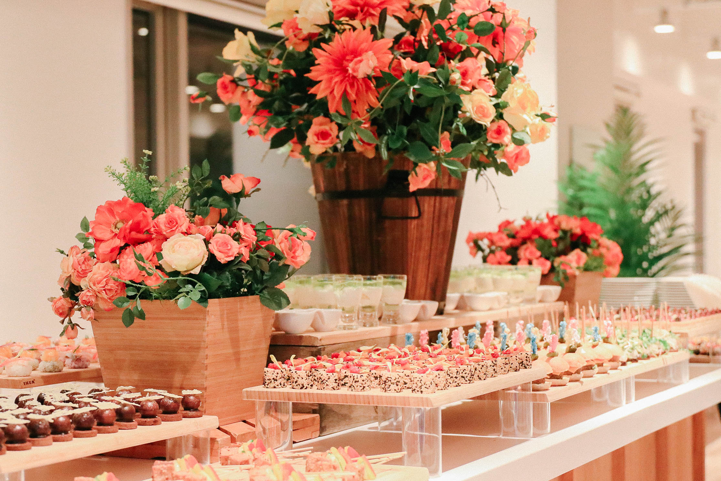 テーブルコーディネートも華やかで、いつものオフィスとは別空間のようです。