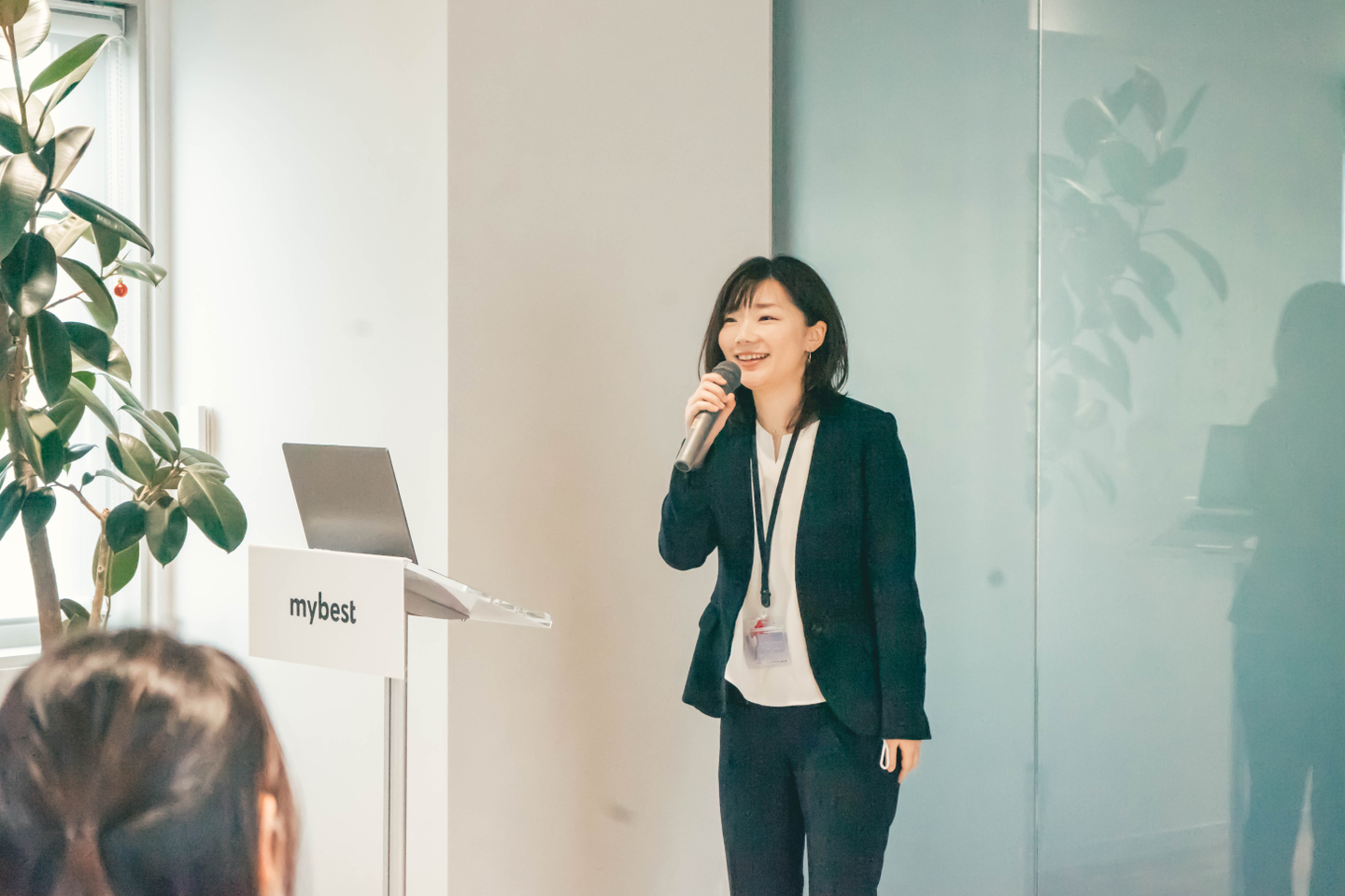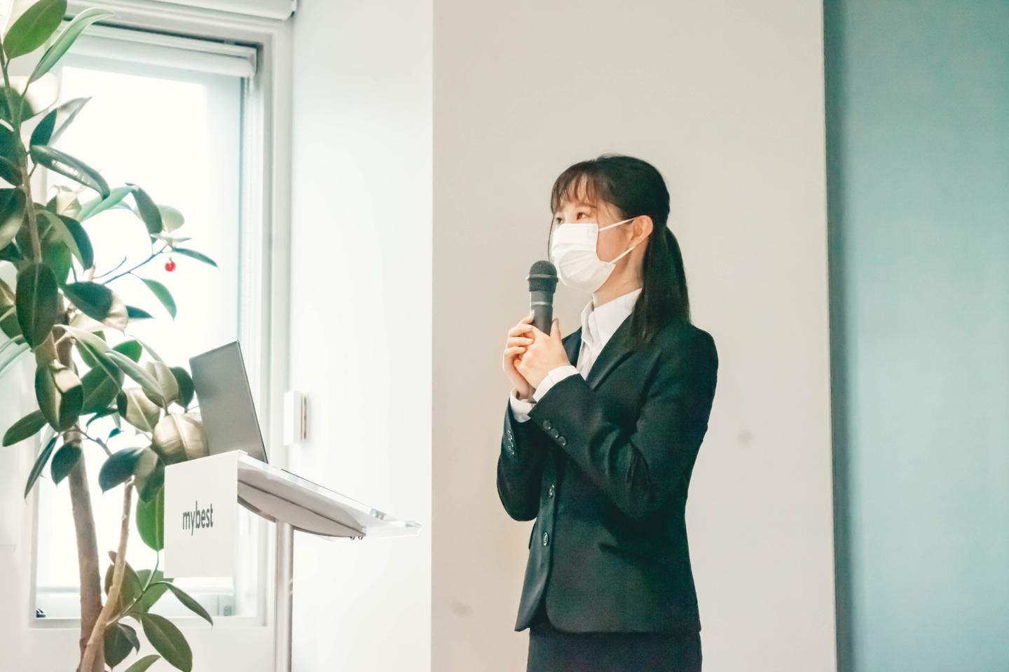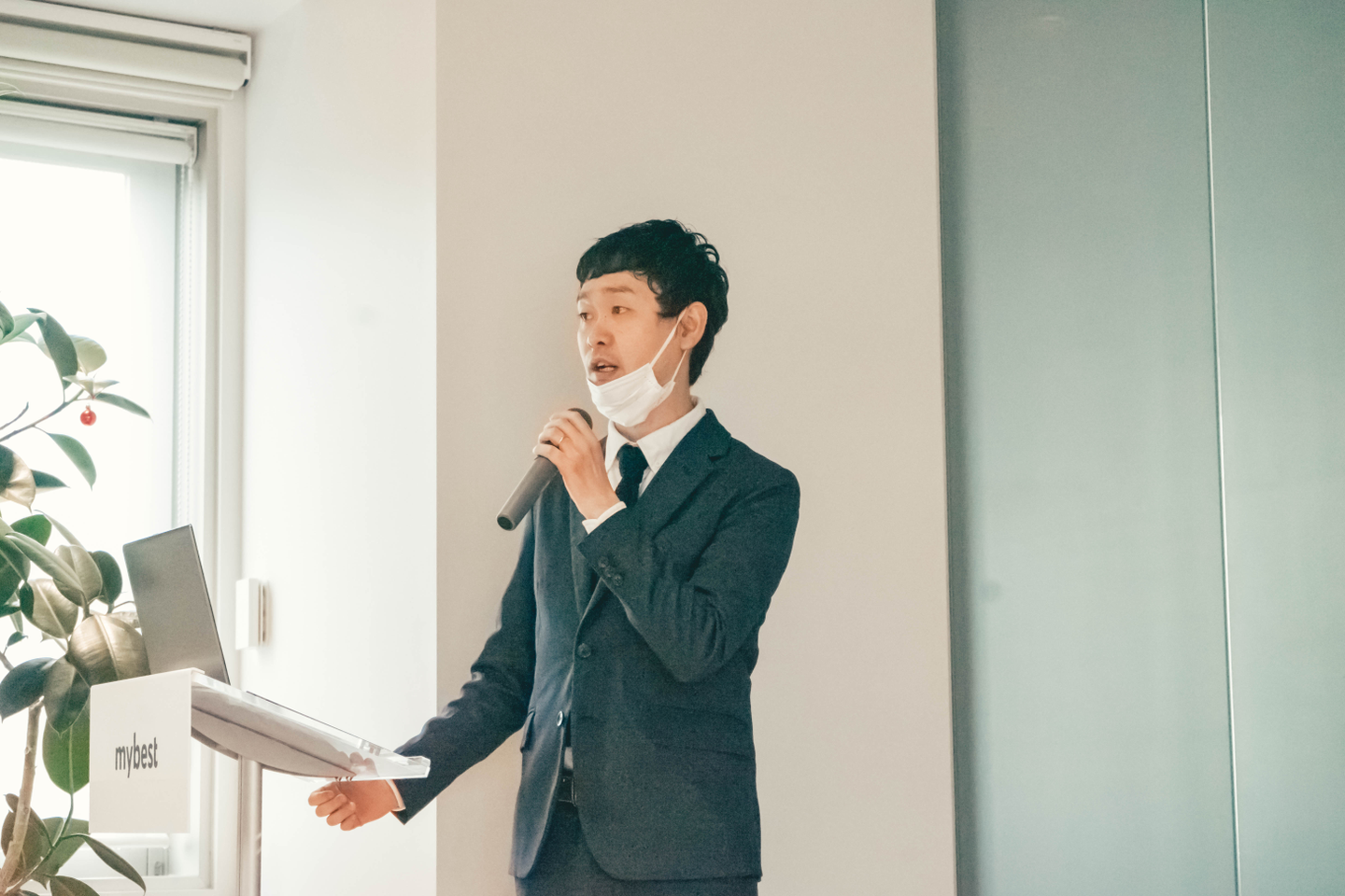 さらに、マイベストが目指している未来や実現したいものを改めて話してくださった上で「世界に通用する会社を一緒に作っていけたらと思っています。」という言葉で挨拶を終わりました。