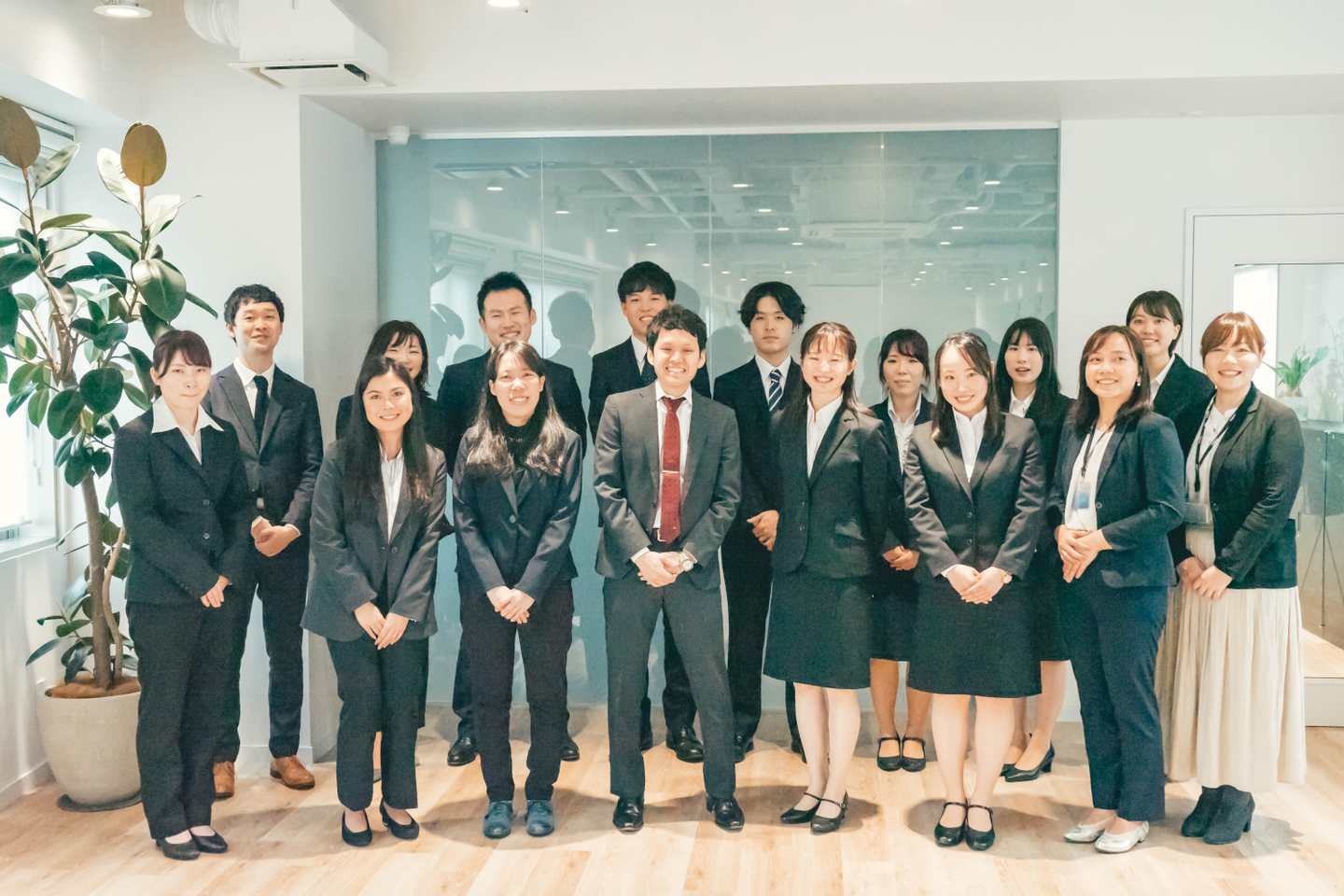 式の終了後、経営陣と新卒メンバーで集合写真を撮影しました!
