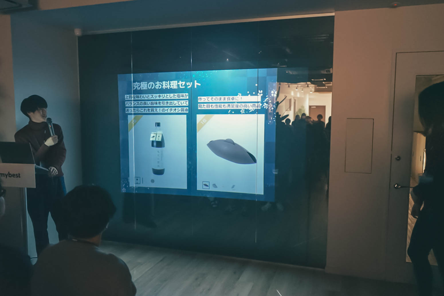 表彰式でのギフト発表。この時は受賞者が料理好きということで、調味料と料理グッズを贈呈しました。