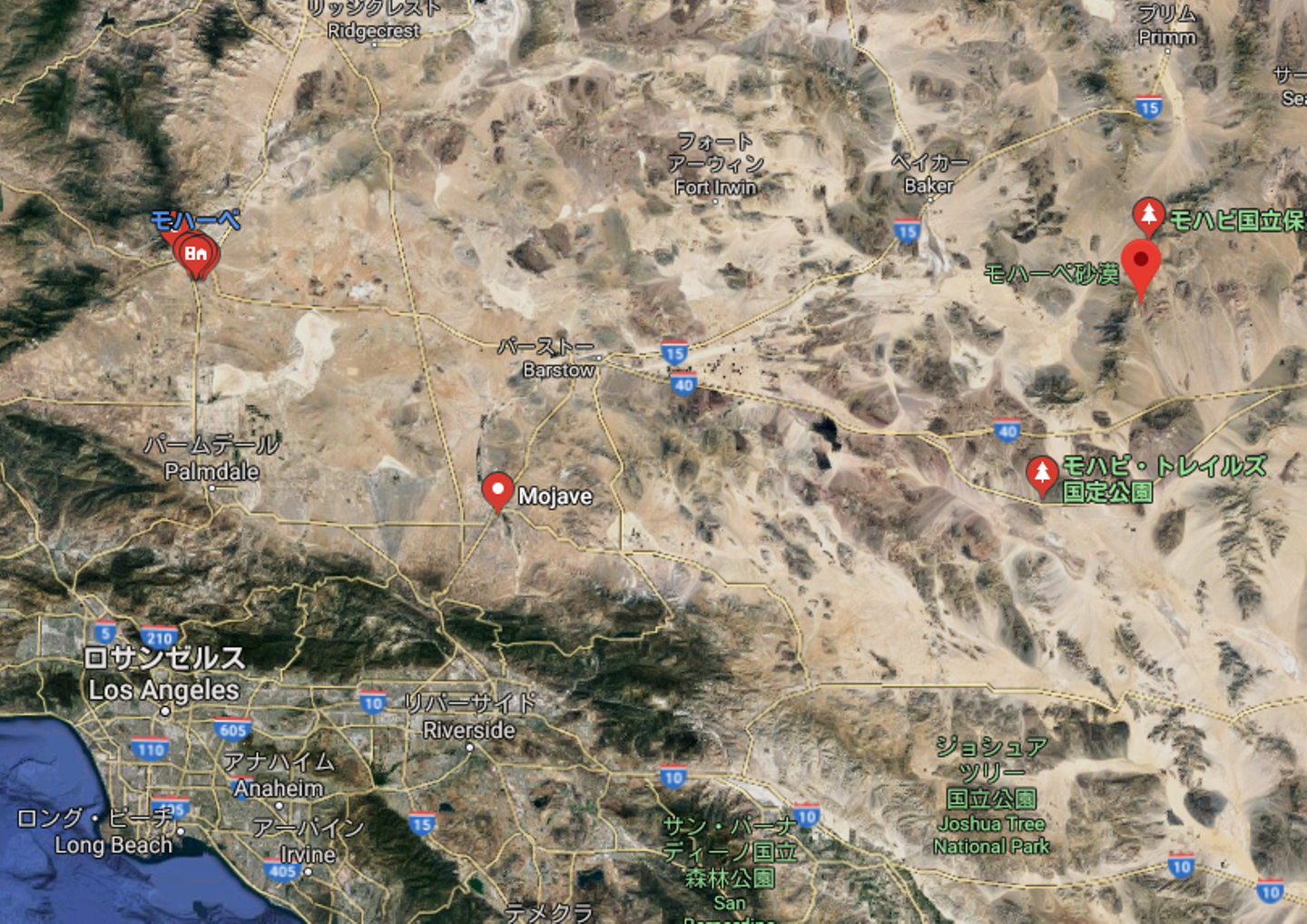 とりあえずモハベ砂漠の位置を確認してみた。