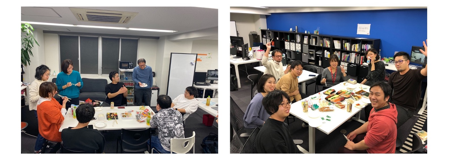 ・金曜の業務終了時にチル(軽い飲み会)を開始(コロナ禍の今はオンラインで継続しています)