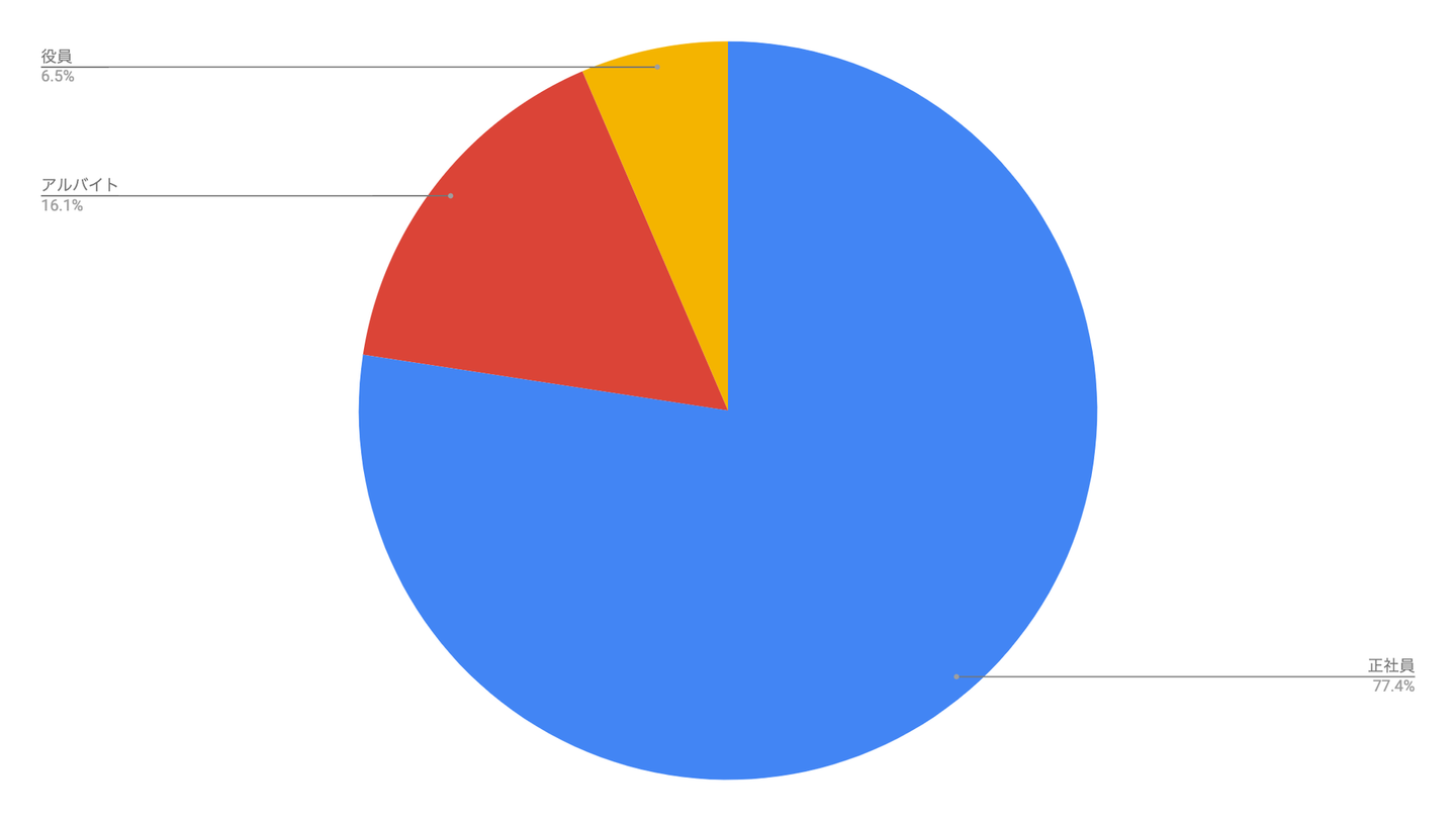 ●正社員とアルバイト、役員の比率は、正社員の比率が昨年より上がりました。
