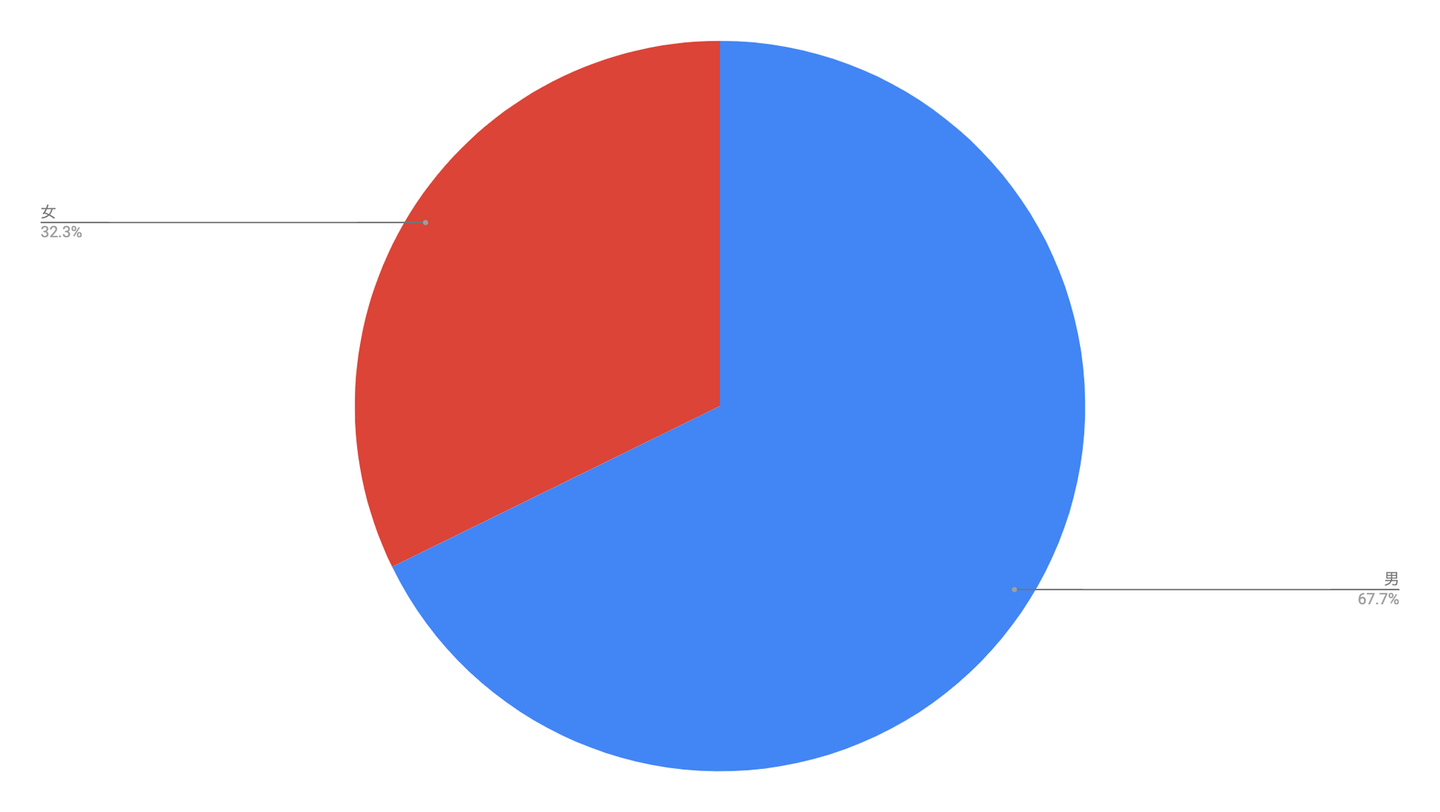 男女比は概ね7:3。もう少し女性が増えるとバランスがよくなりますね。